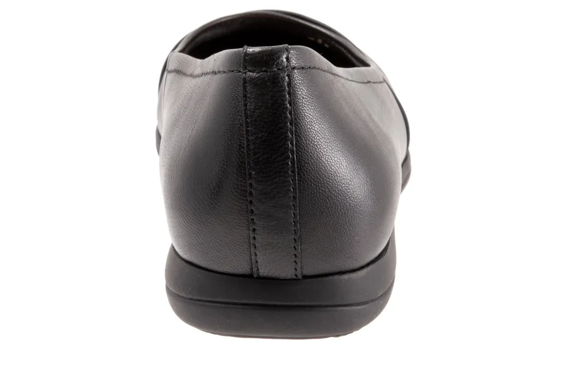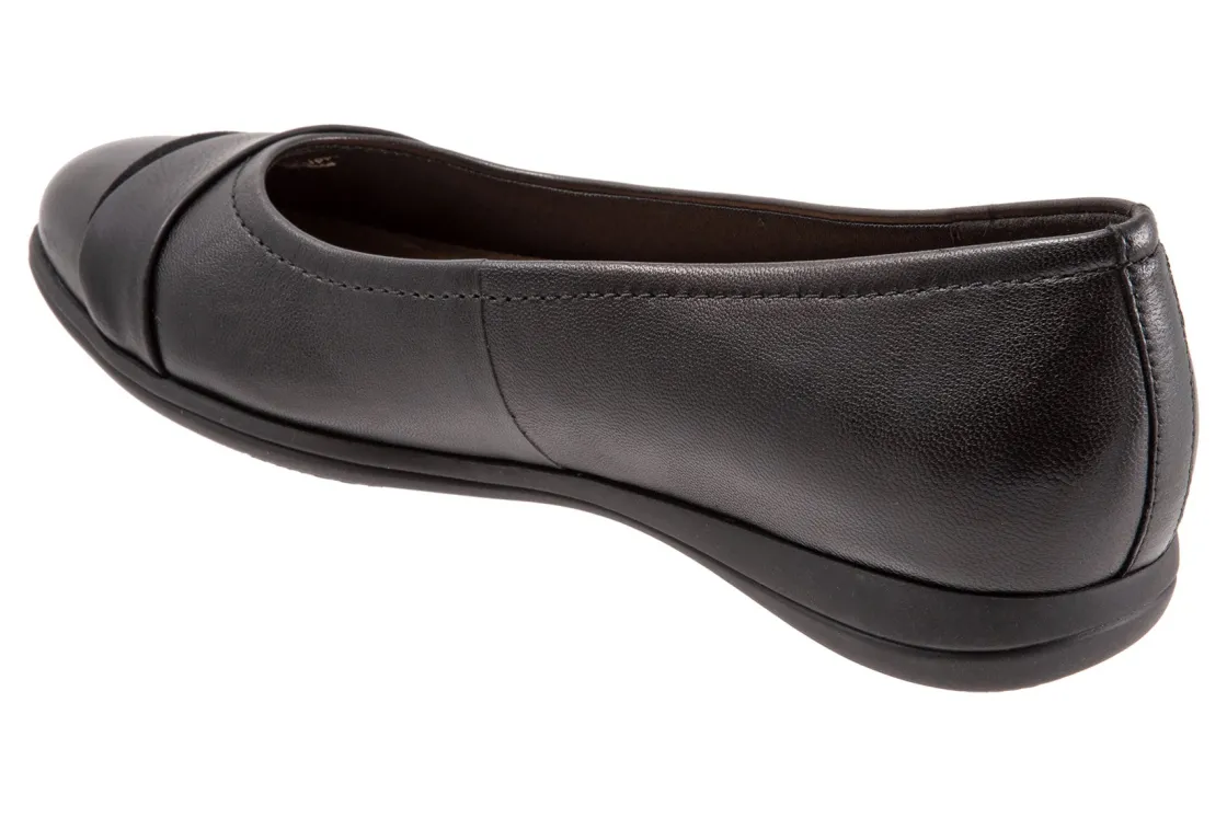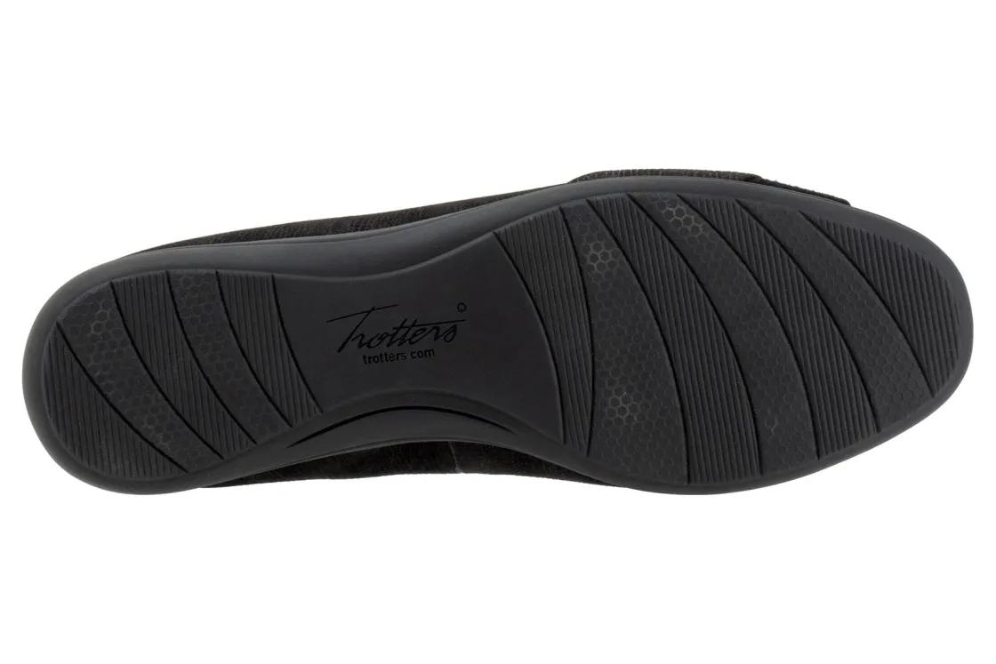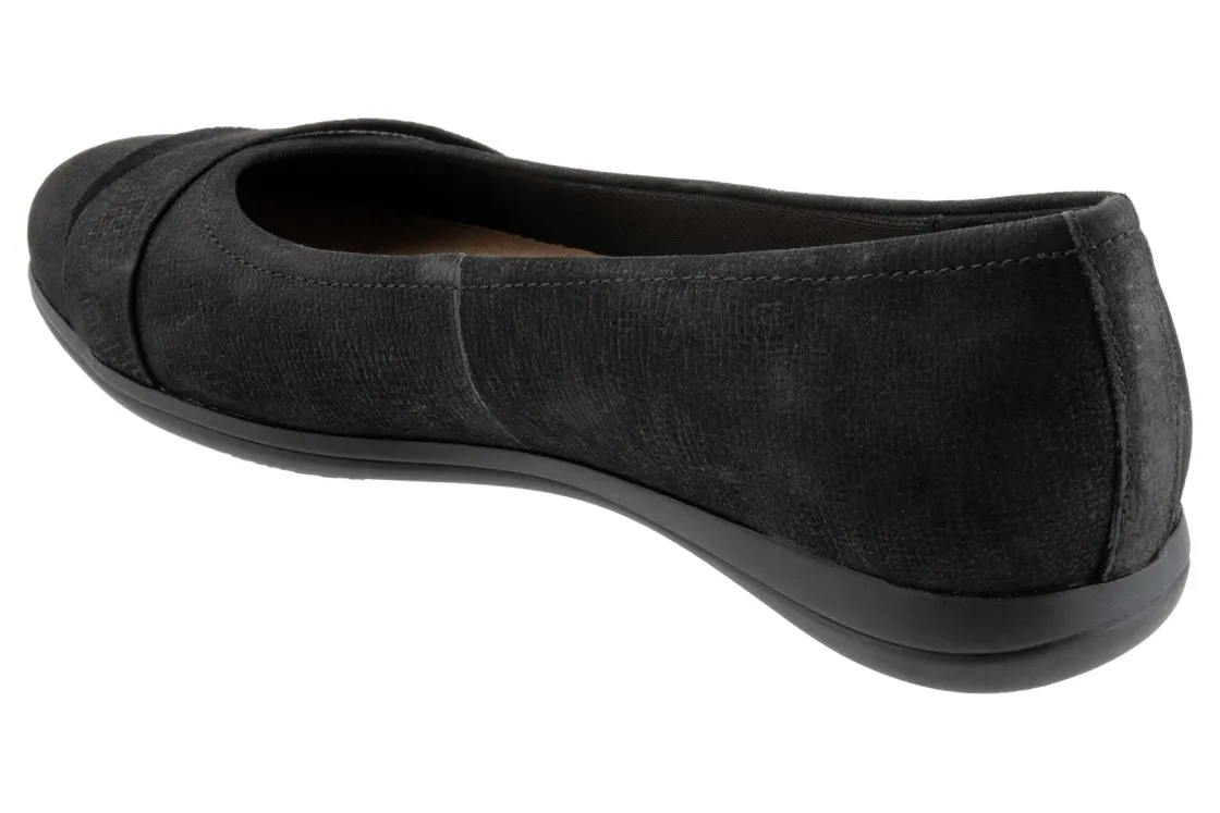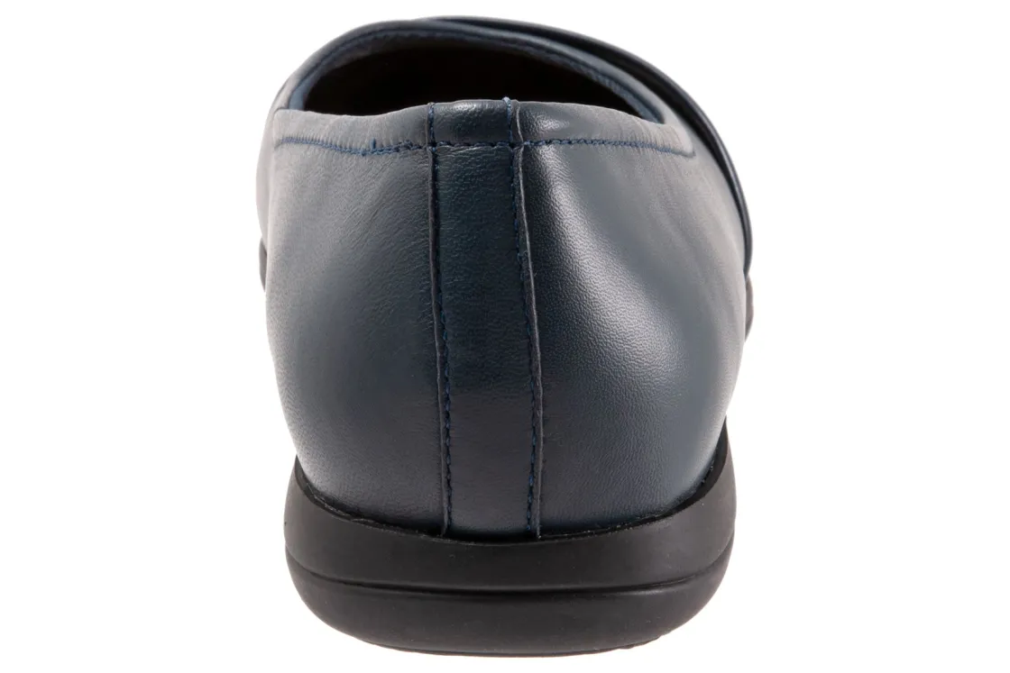 Danni is an essential flat with mixed materials and asymmetric detailing. A grippy rubber sole and removable cushioned footbed with arch support make for all day comfort.