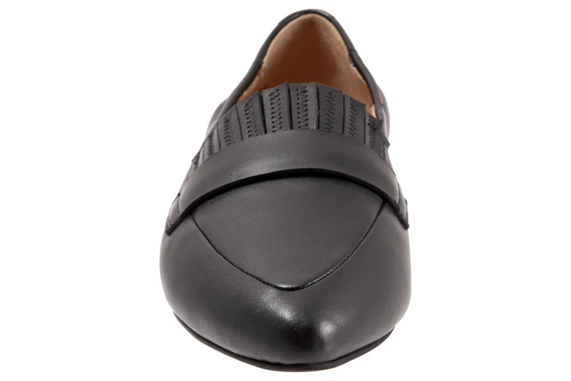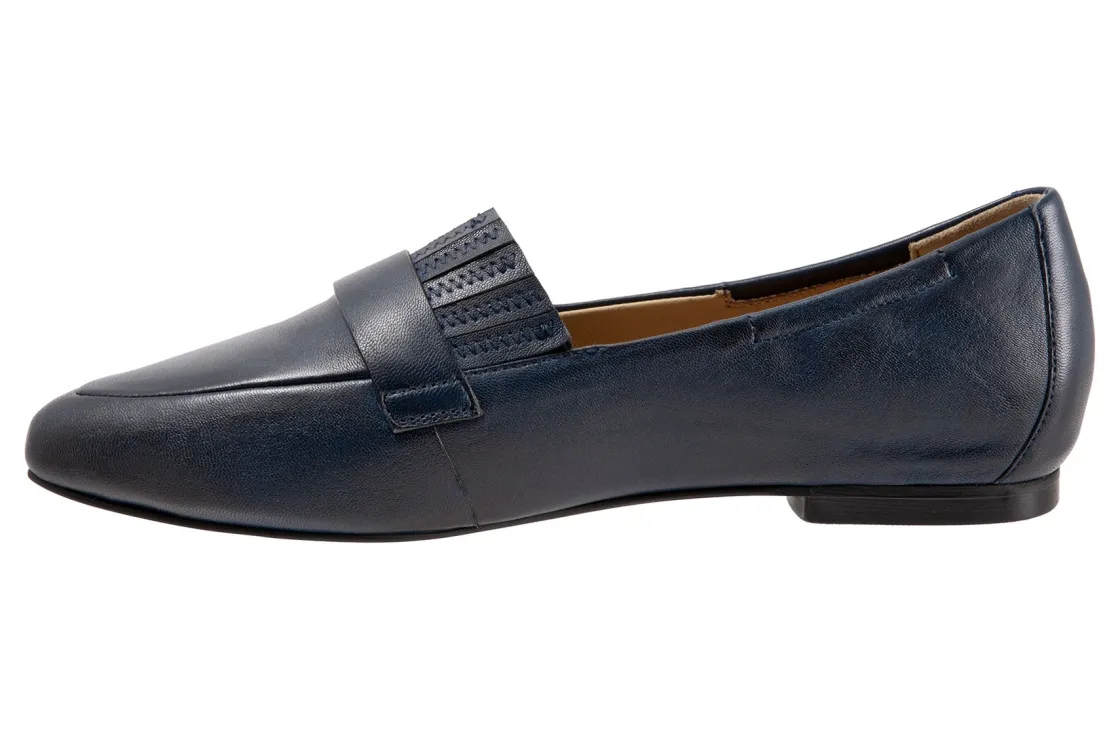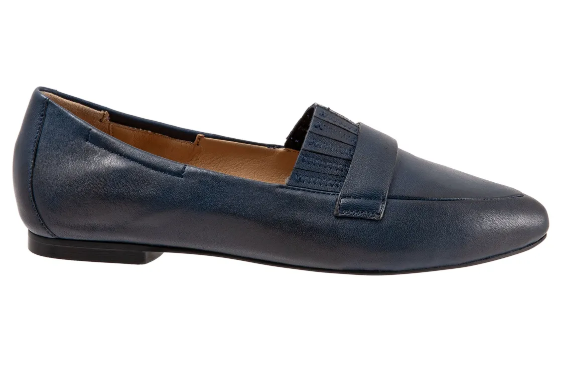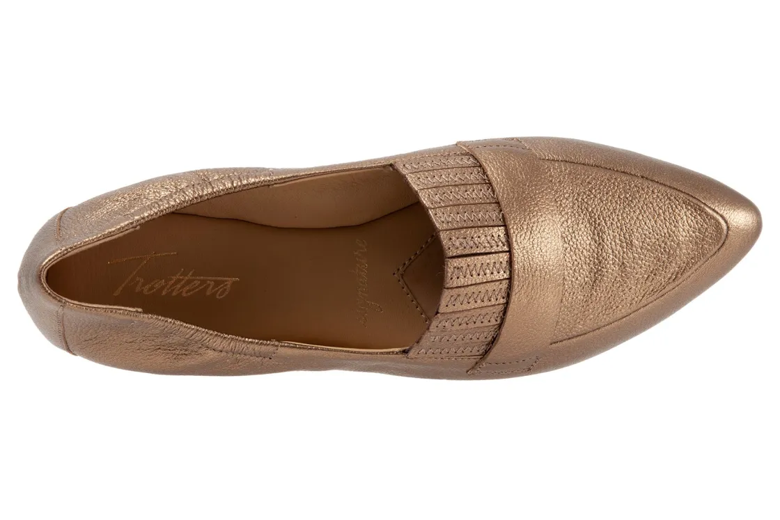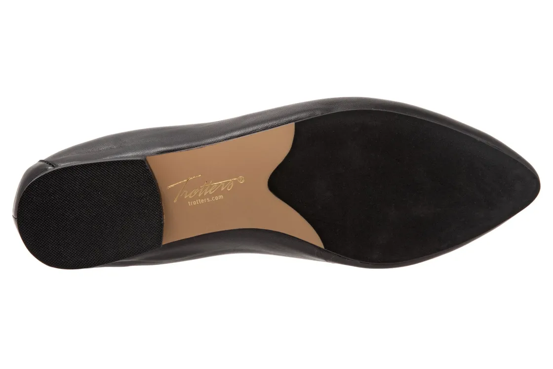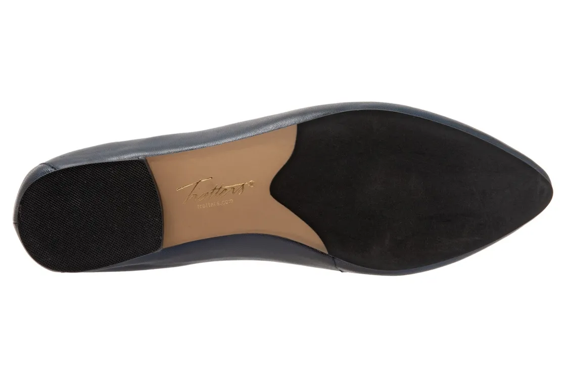Trotters Emotion is a comfortable and stylish flat. These flat shoes have leather lining and upper, cushioned suede and leather footbed and rubber outsole. This ballet flat also has an elasticized topline, pointed toe construction and ⅜ inch heel height will make these flats a new favorite.