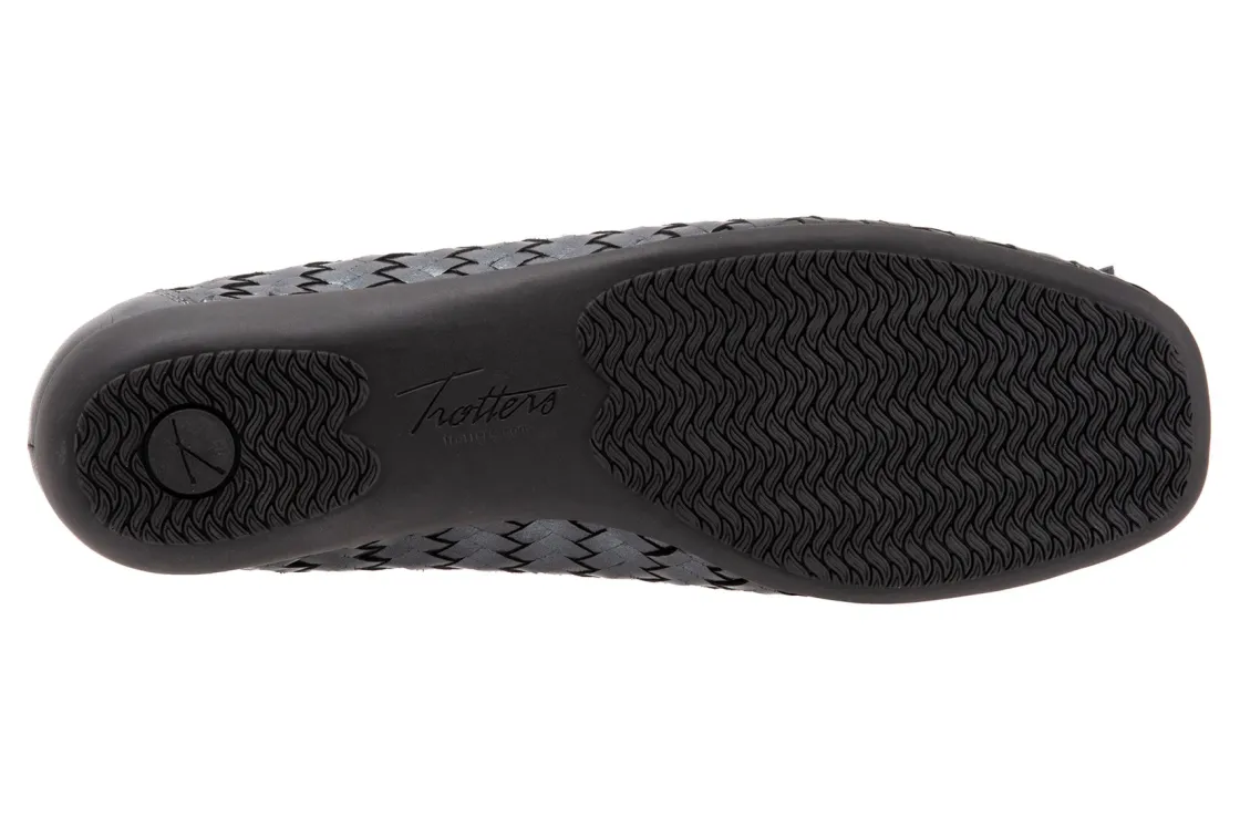 Trotters Gillian is a ballet flat with an intricate basket weave construction. Features include leather uppers, feminine bow detailing and rubberized outsole. A removable EVA footbed provides comfort, while a leather wrapped block heel adds stability.