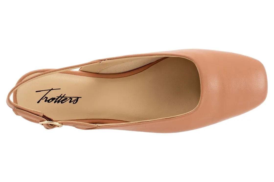 Trotters Holly is a stylish slingback flat built for comfort. These flat shoes have leather uppers, cushioned leather footbed, square toe and rubber outsole. An adjustable slingback strap buckle closure, low top silhouette and ⅝ inch heel height makes these flats stand out from the crowd.