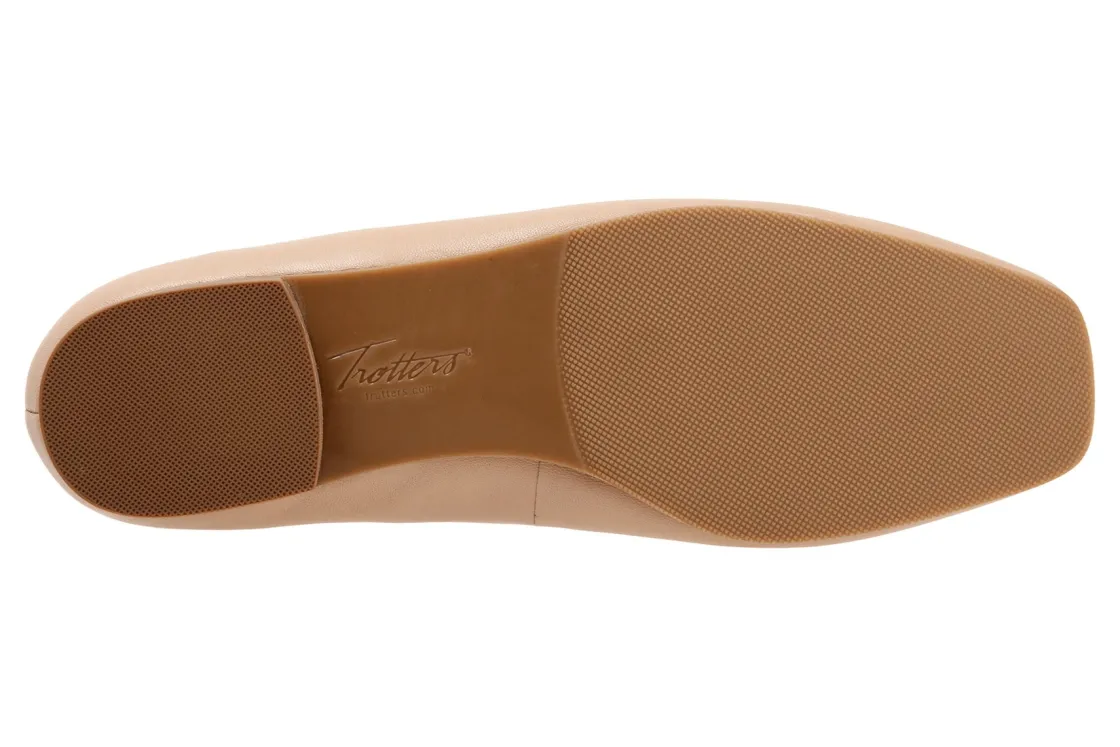 Trotters Honesty is a stylish and lightweight ballet flat. These durable flat shoes have leather uppers, removable molded EVA footbed and rubber outsole. A soft nappa footbed lining, cutout top design, dainty bow and ⅝ inch heel height outlines these cute and cozy flats.