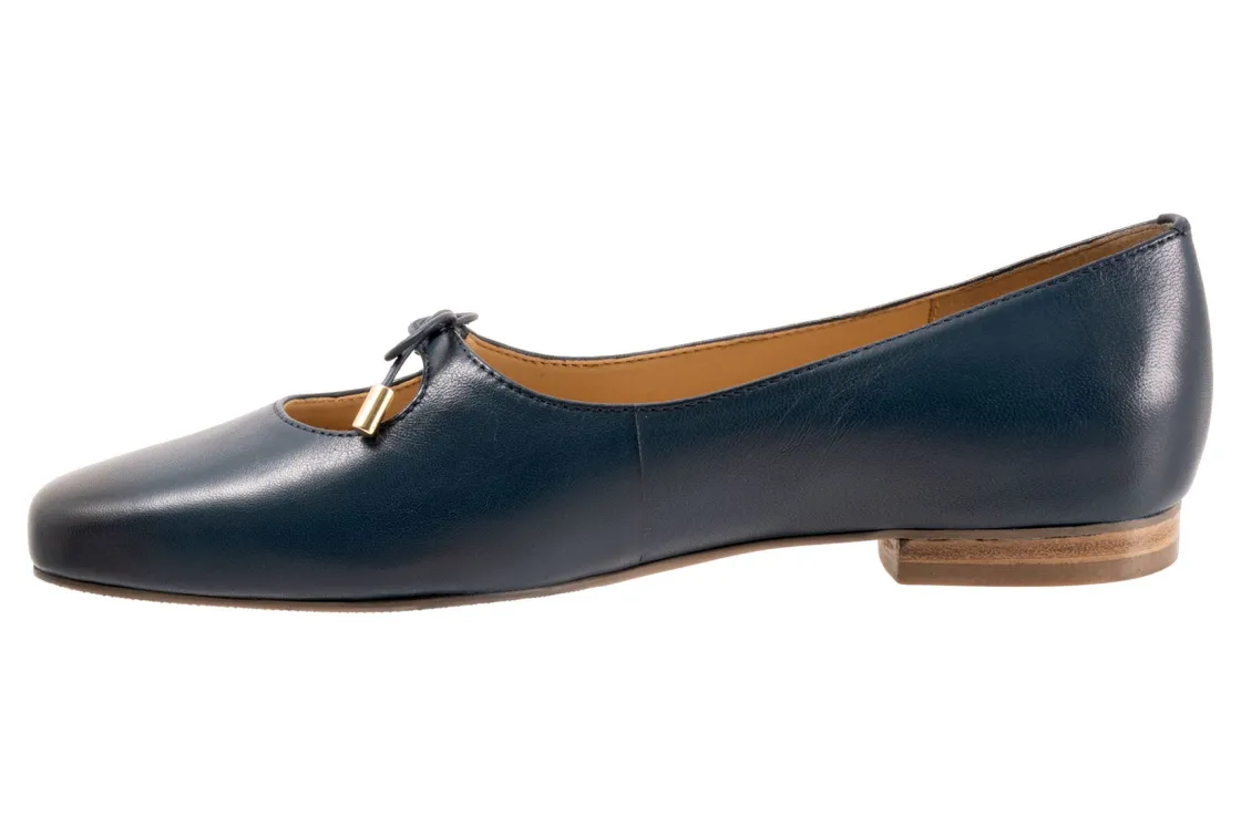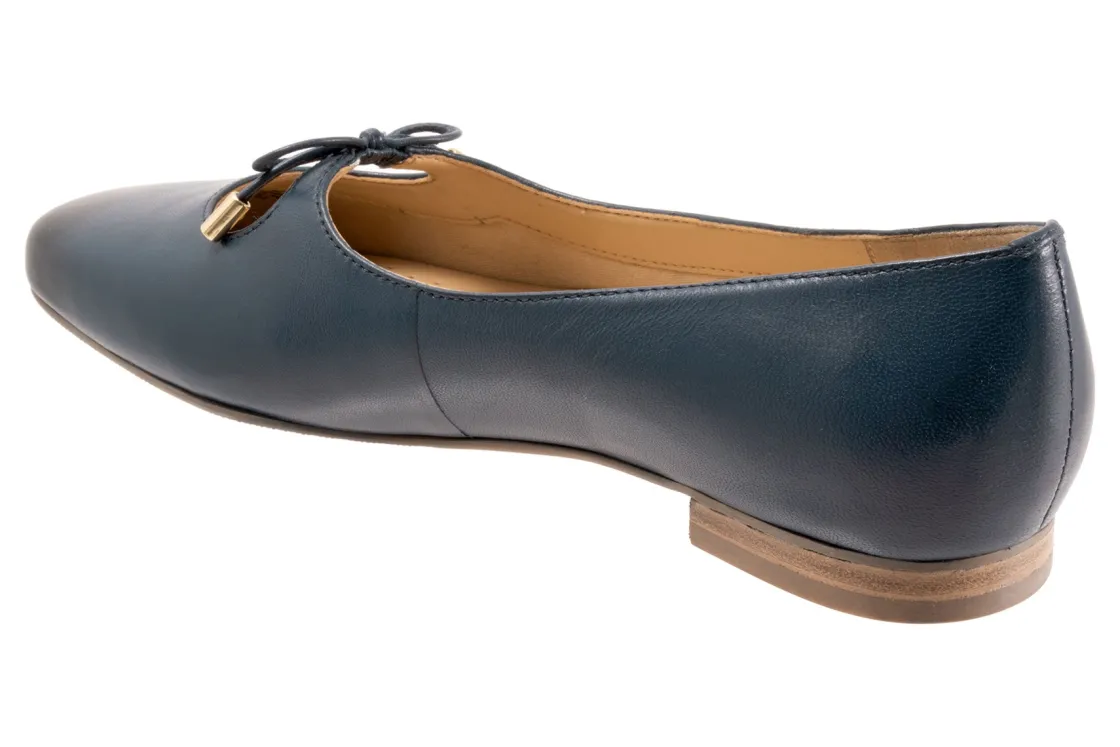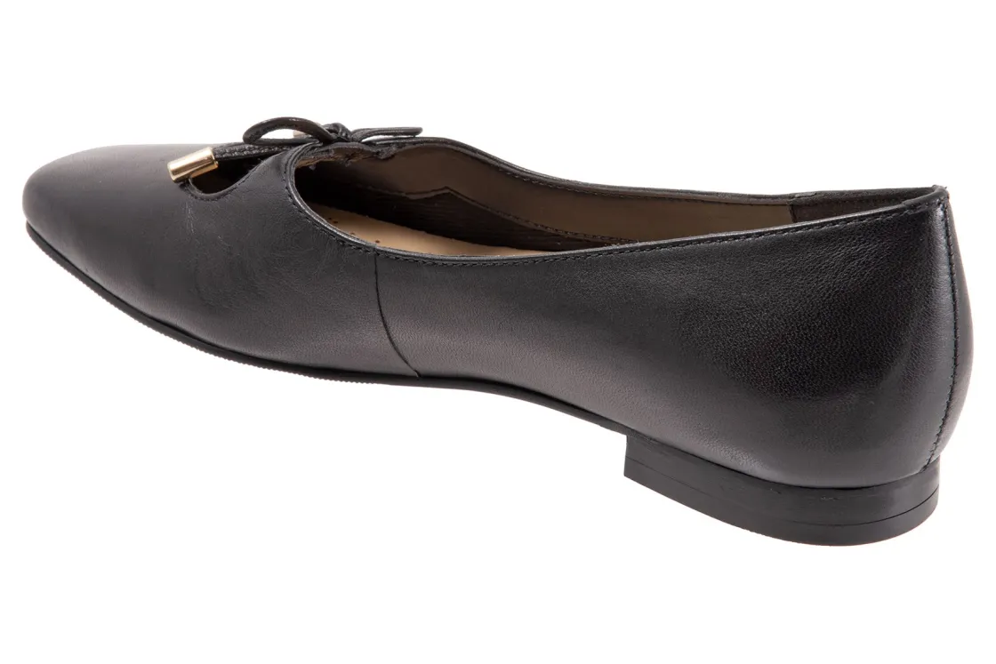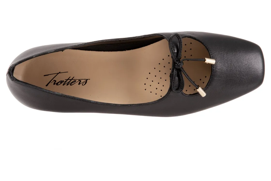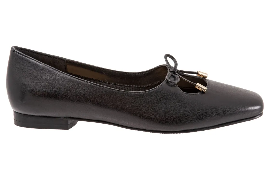 Trotters Honesty is a stylish and lightweight ballet flat. These durable flat shoes have leather uppers, removable molded EVA footbed and rubber outsole. A soft nappa footbed lining, cutout top design, dainty bow and ⅝ inch heel height outlines these cute and cozy flats.