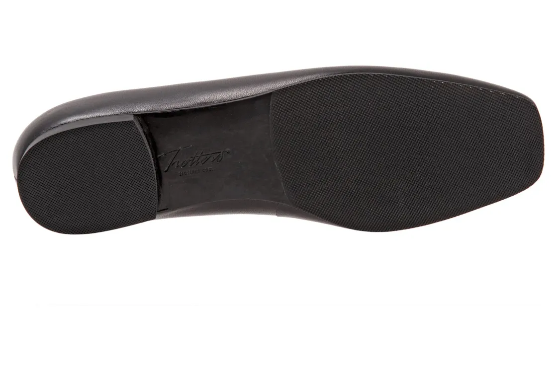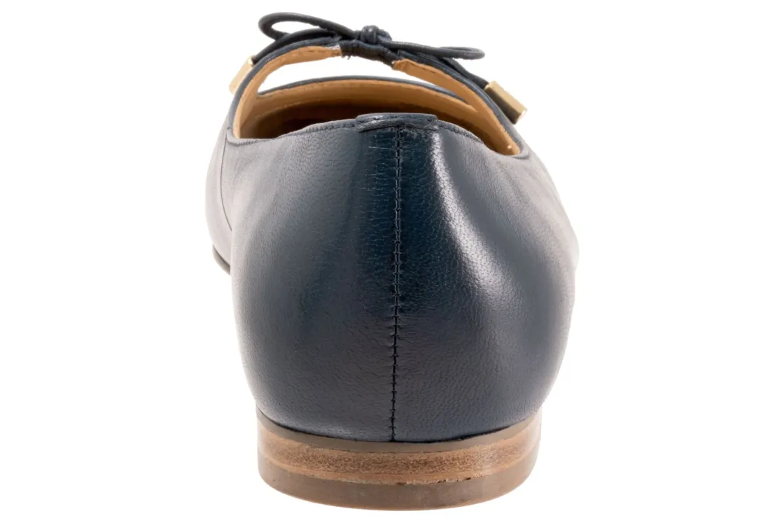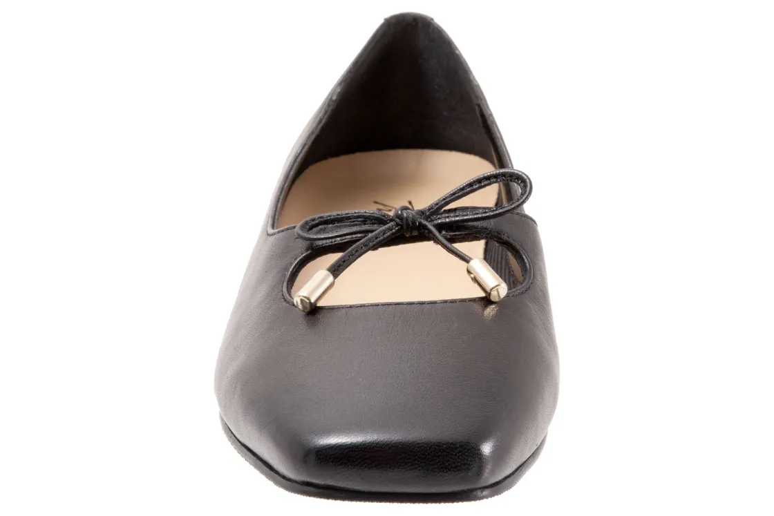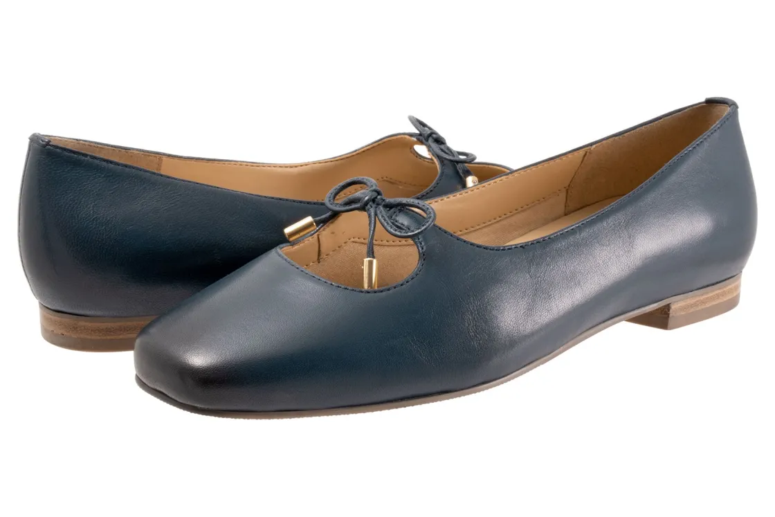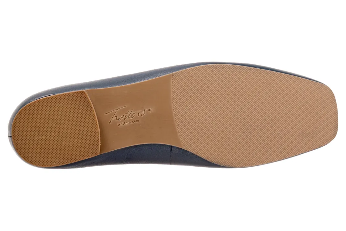 Trotters Honesty is a stylish and lightweight ballet flat. These durable flat shoes have leather uppers, removable molded EVA footbed and rubber outsole. A soft nappa footbed lining, cutout top design, dainty bow and ⅝ inch heel height outlines these cute and cozy flats.