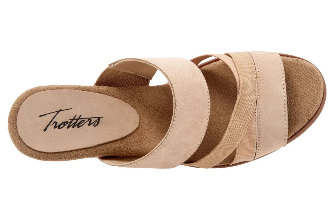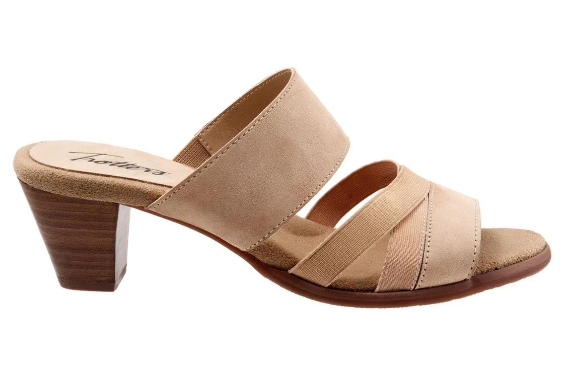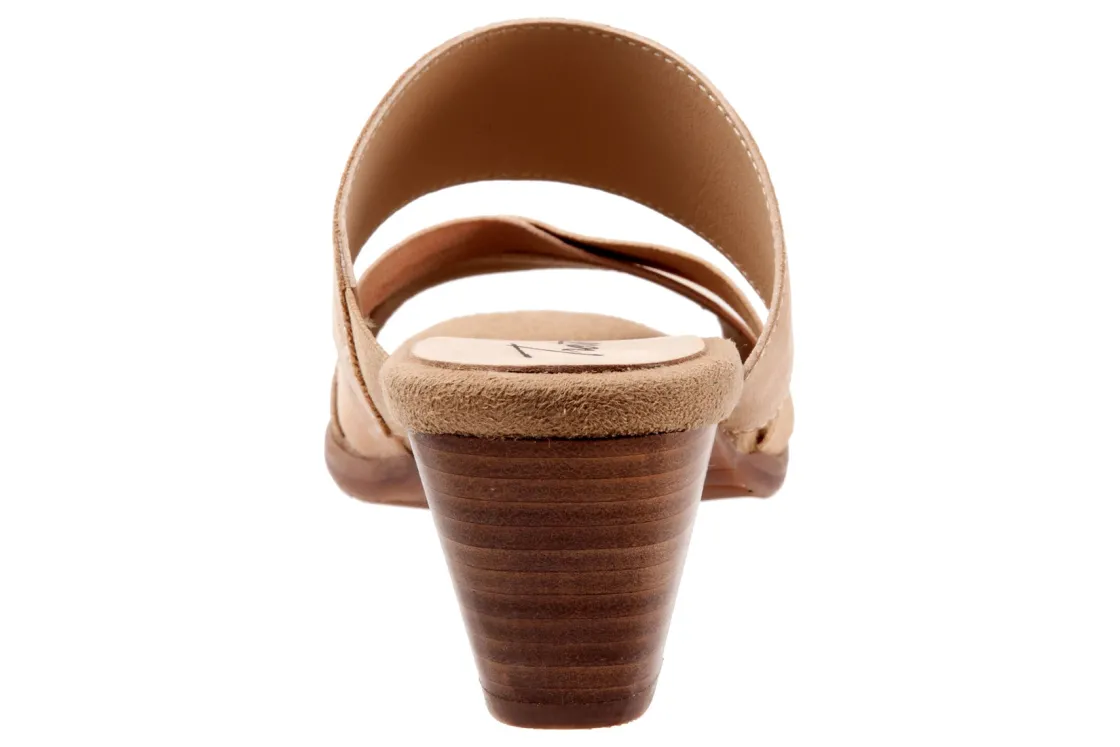The Maxine has crossing stretch straps as well as an elastic v-gore for a comfortable fit. Maxine’s easygoing style and stacked heel keeps thing playful and chic.