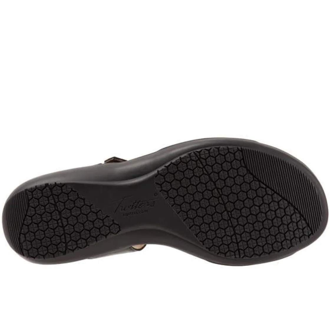 Trotters Riva is a strappy sandal that makes walking a breeze. These casual sandals feature a cushioned memory foam footbed and asymmetrical adjustable straps. A soft velvet upper lining and contoured footbed with arch support provides all day comfort.• Leather Upper and soft velvet upper lining.• Adjustable Hook and Loop fastening system.• Adjustable Buckle.• Soft Microfiber Footbed lining.• Memory Foam with molded EVA footbed.• Lightweight Flexible rubberized sole.