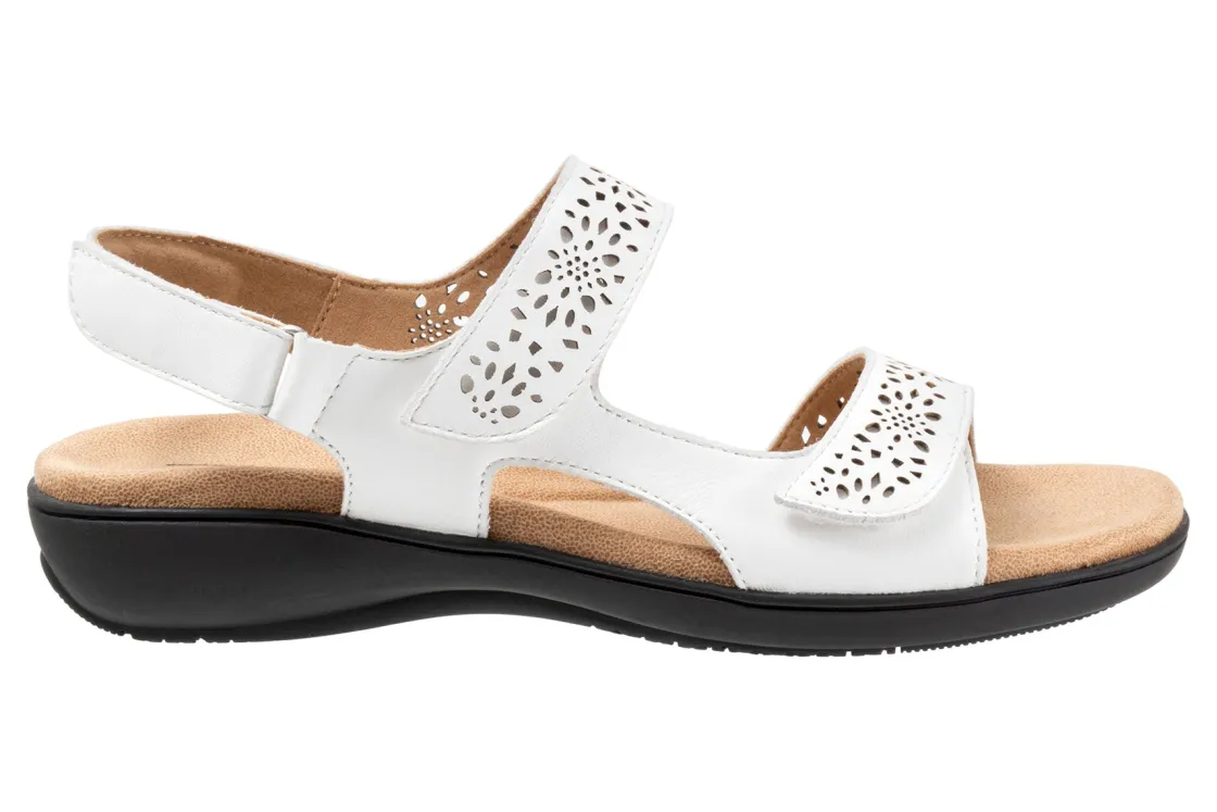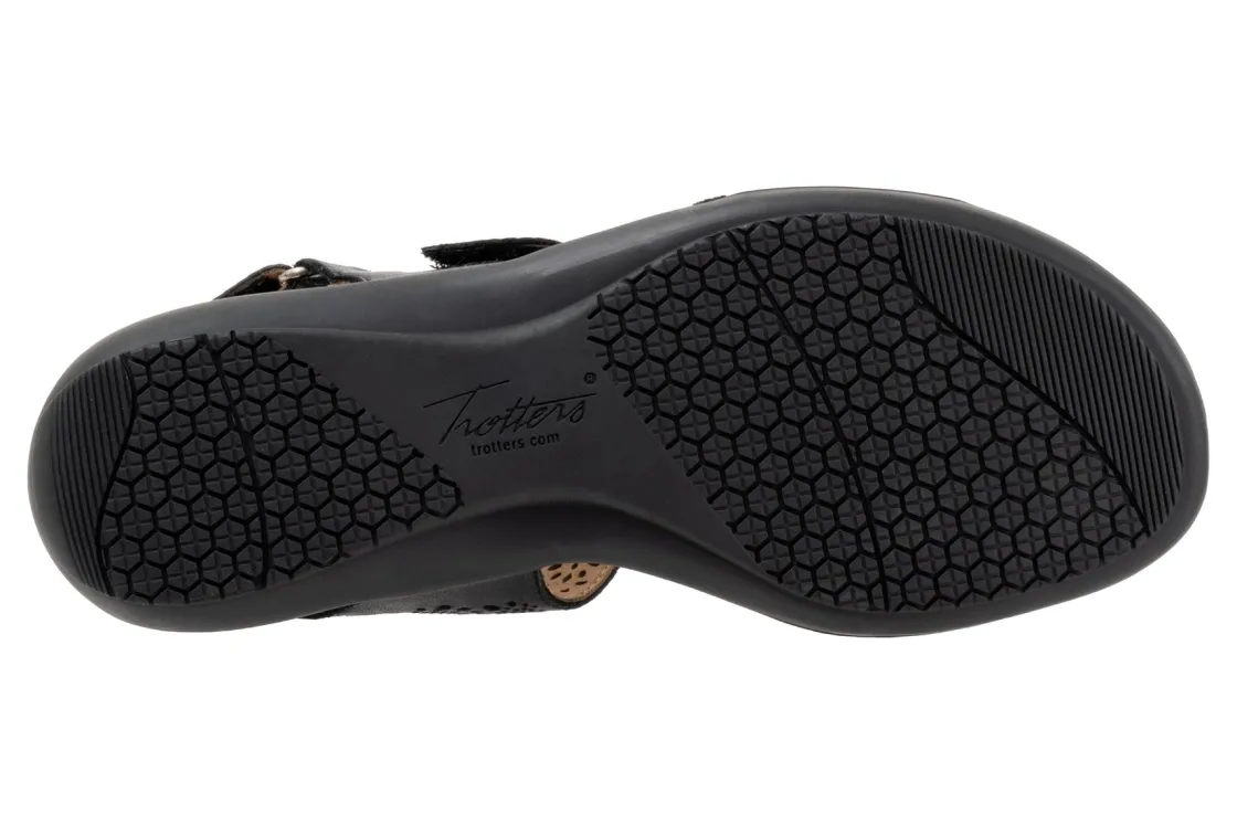 Perforated patterns and diamond edge stud hardware accentuate the adjustable straps of a fully cushioned sandal set on a comfort-focused wedge.