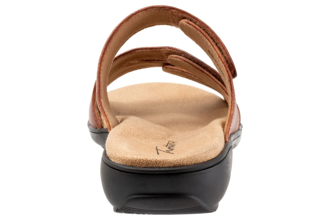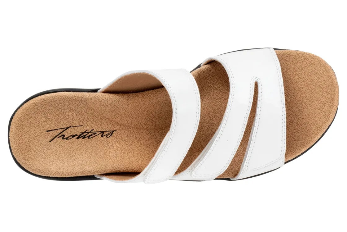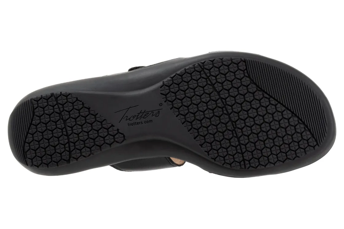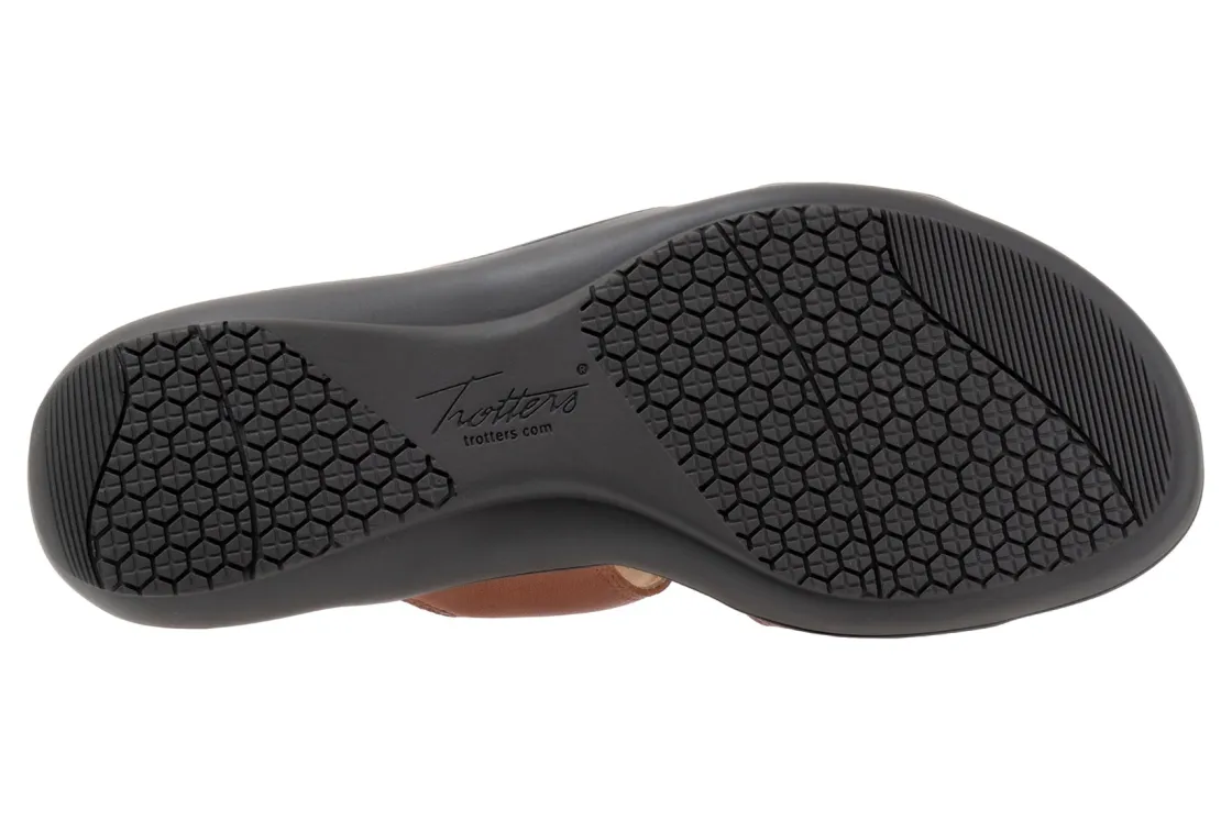 Trotters Rose is a comfortable and stylish summer sandal. These warm weather shoes have leather uppers, a memory foam EVA footbed and a rubberized outsole. Three adjustable hook and loop straps, a soft microfiber footbed lining and 1 ¼ in heel height outlines these strappy sandals.