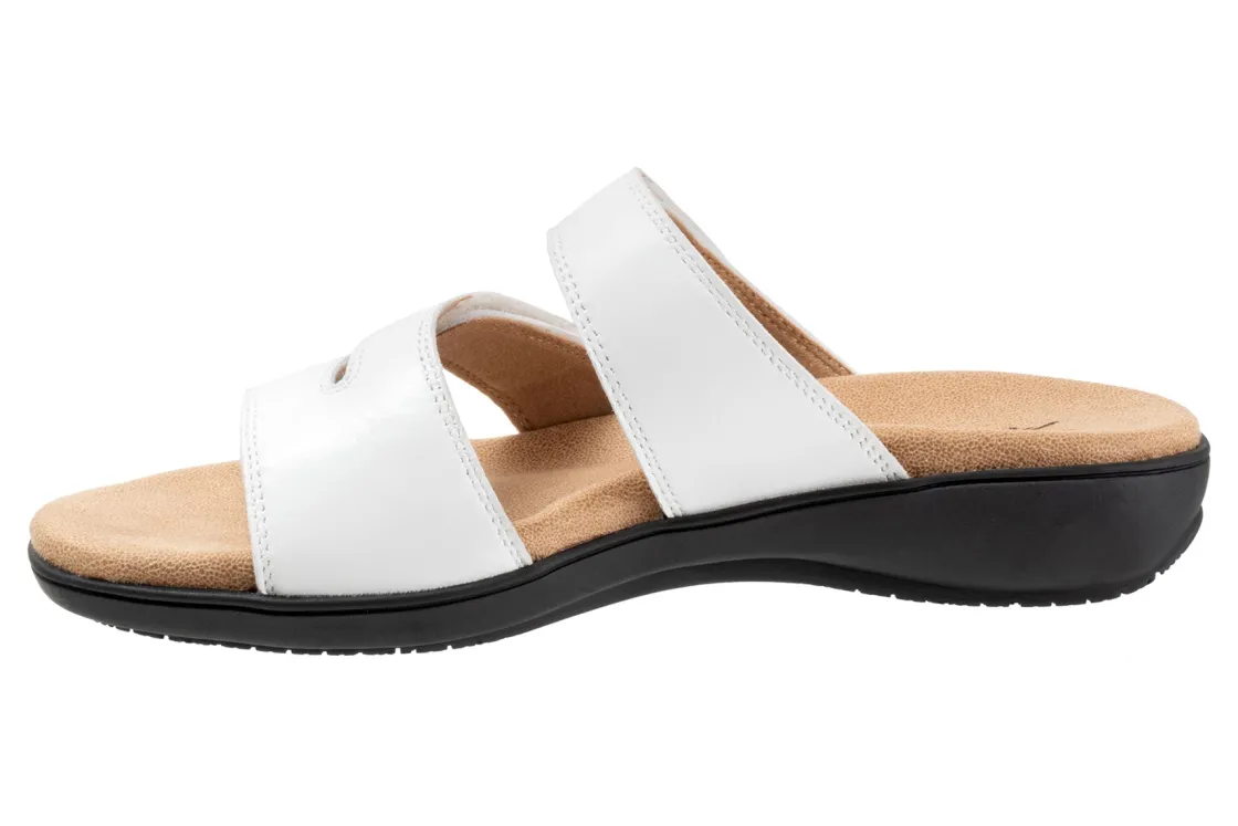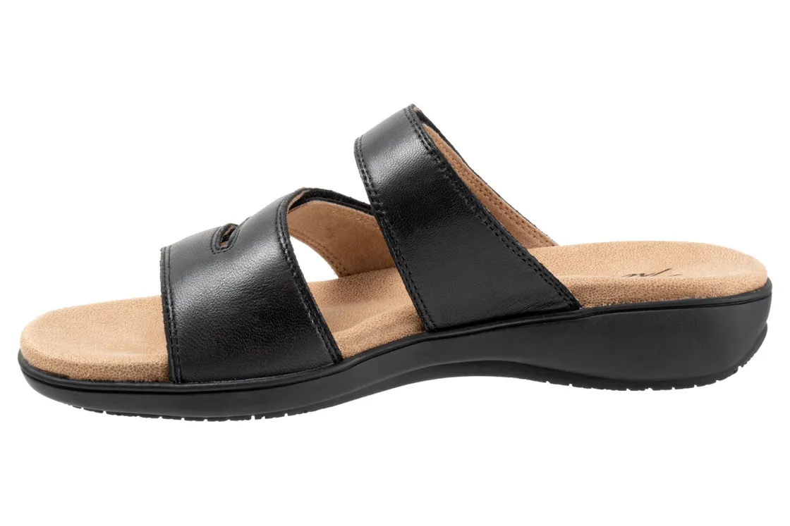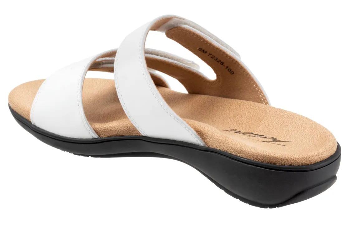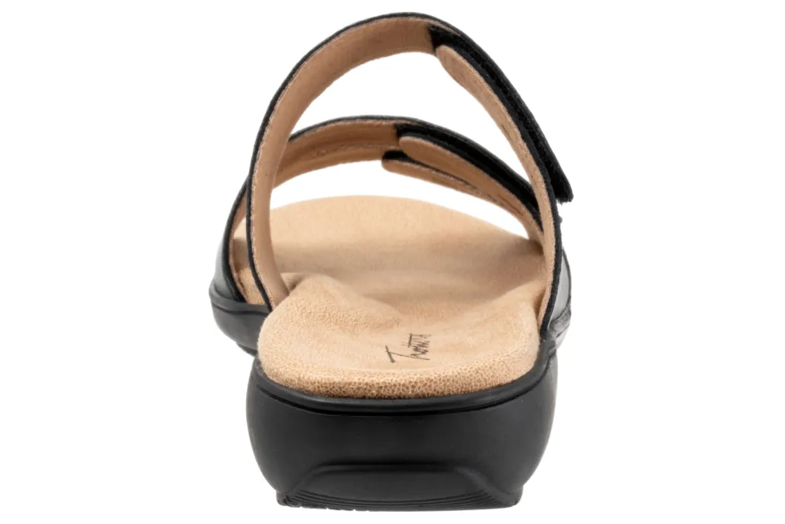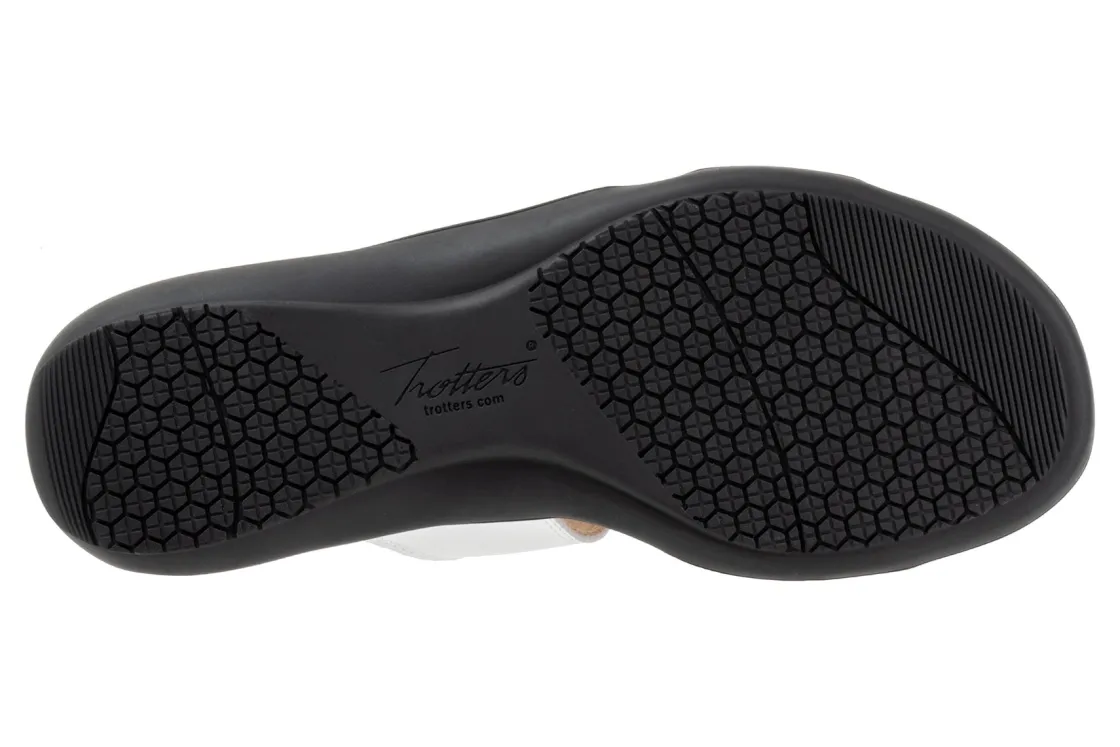 Trotters Rose is a comfortable and stylish summer sandal. These warm weather shoes have leather uppers, a memory foam EVA footbed and a rubberized outsole. Three adjustable hook and loop straps, a soft microfiber footbed lining and 1 ¼ in heel height outlines these strappy sandals.