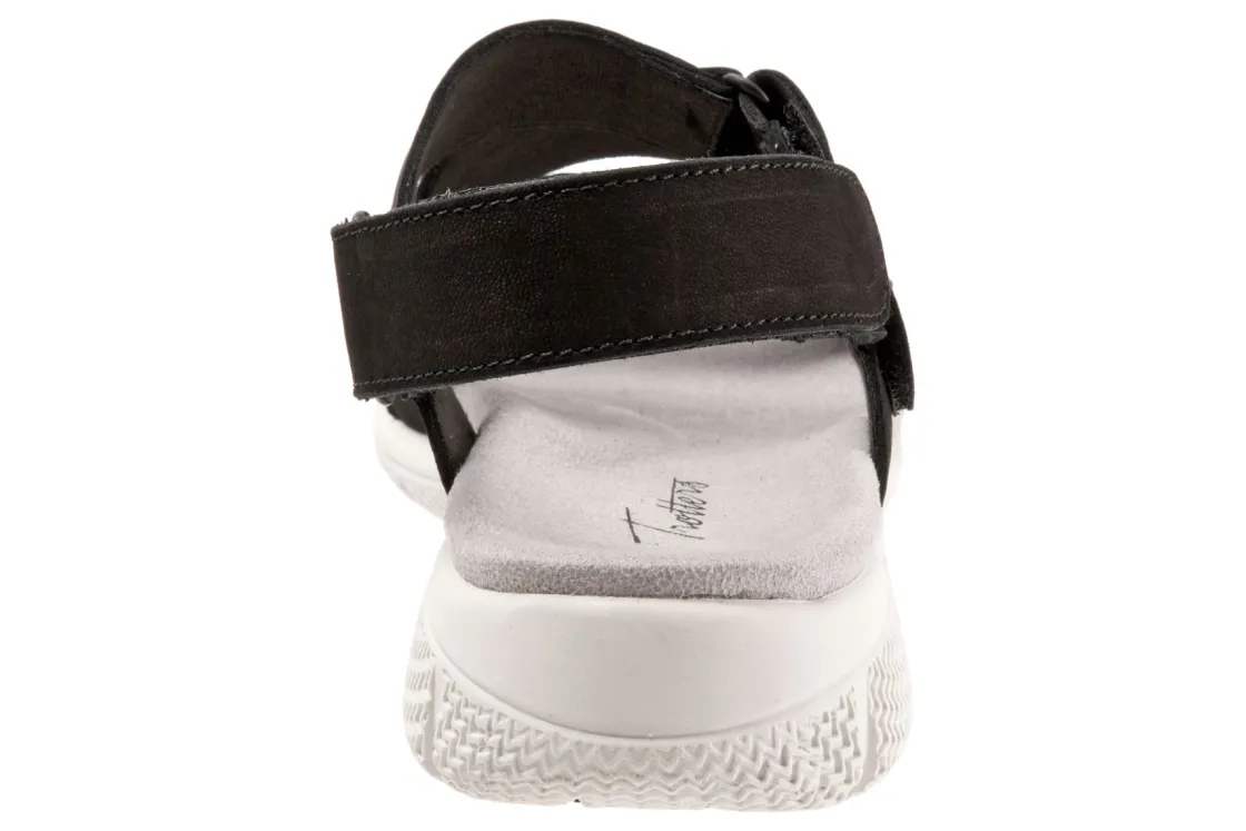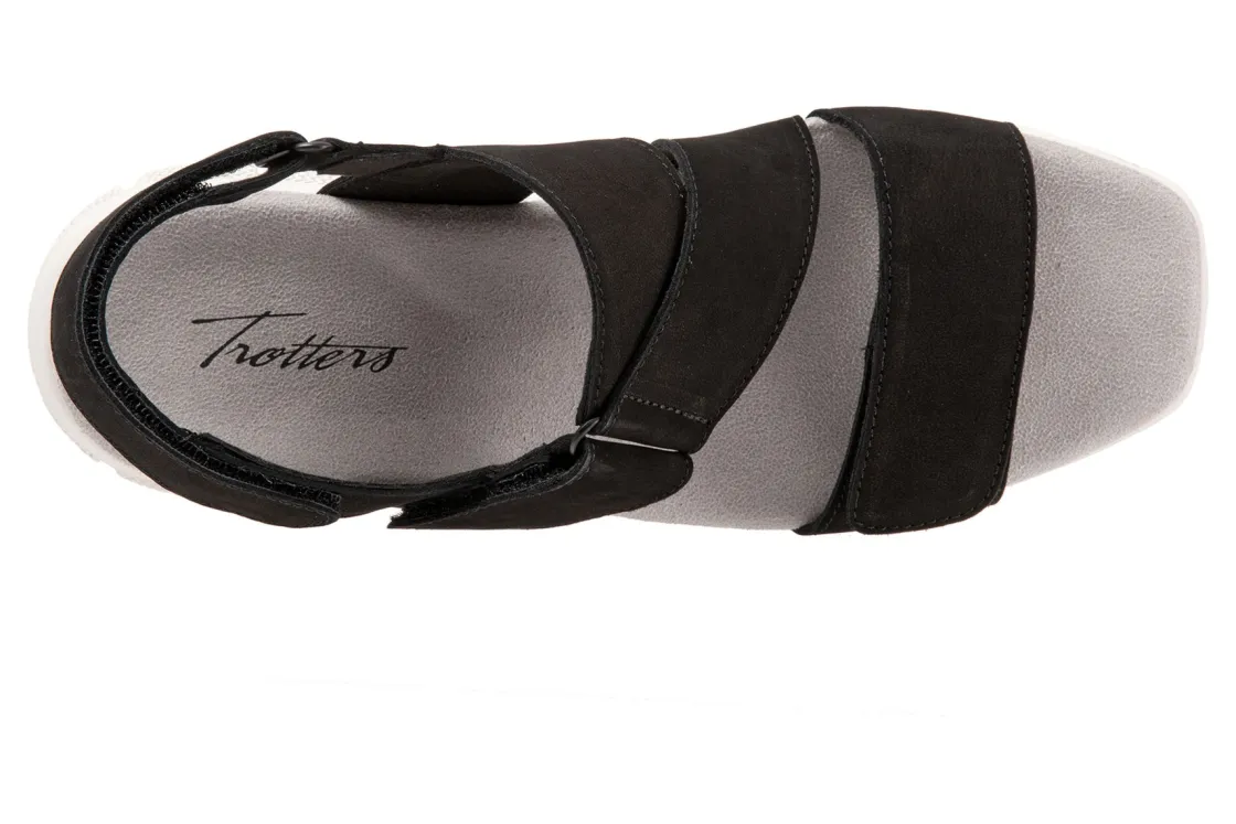 Trotters Tatia is a supportive and comfortable summer sandal. These warm weather shoes have leather uppers, memory foam cushioned footbed and EVA outsole. Adjustable hook and loop straps, microfiber footbed lining and 1-inch heel height helps these sandals stand out.
