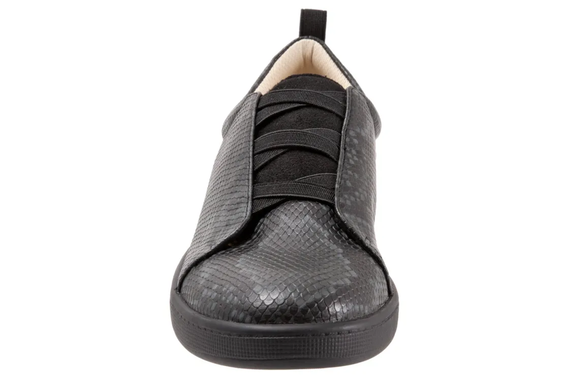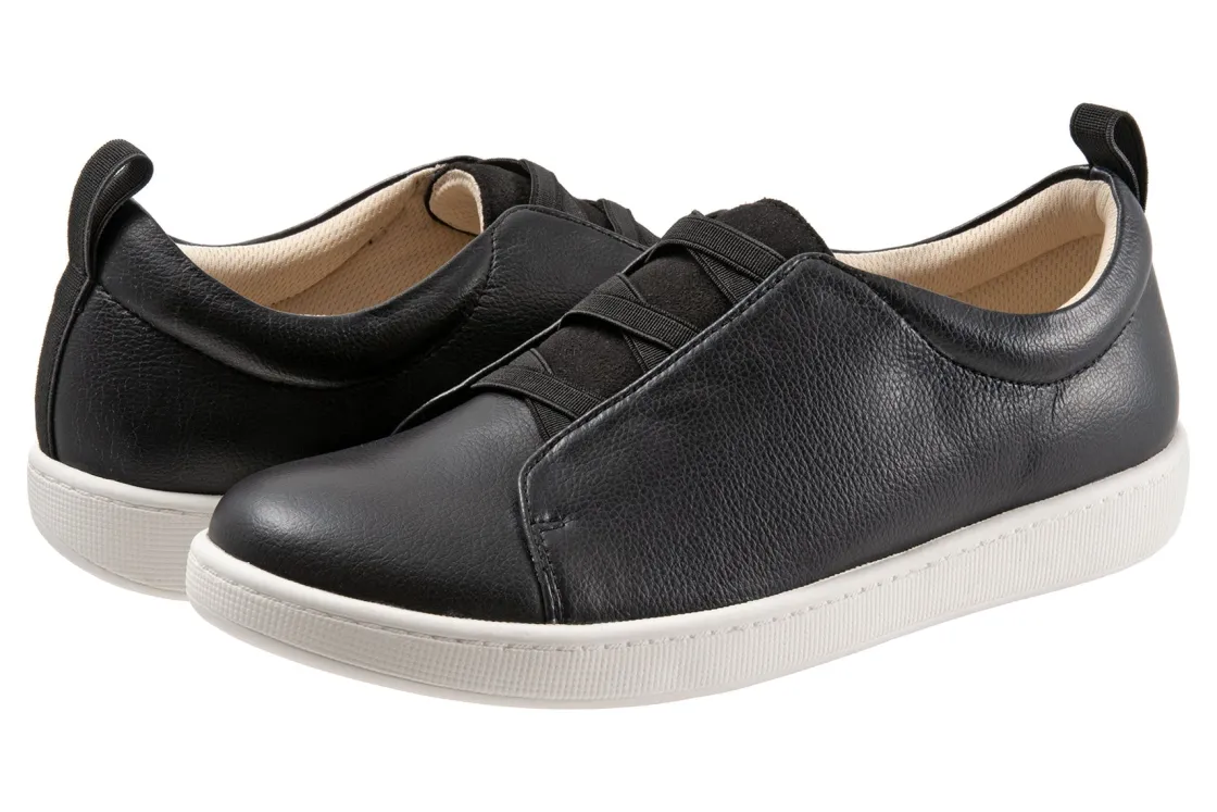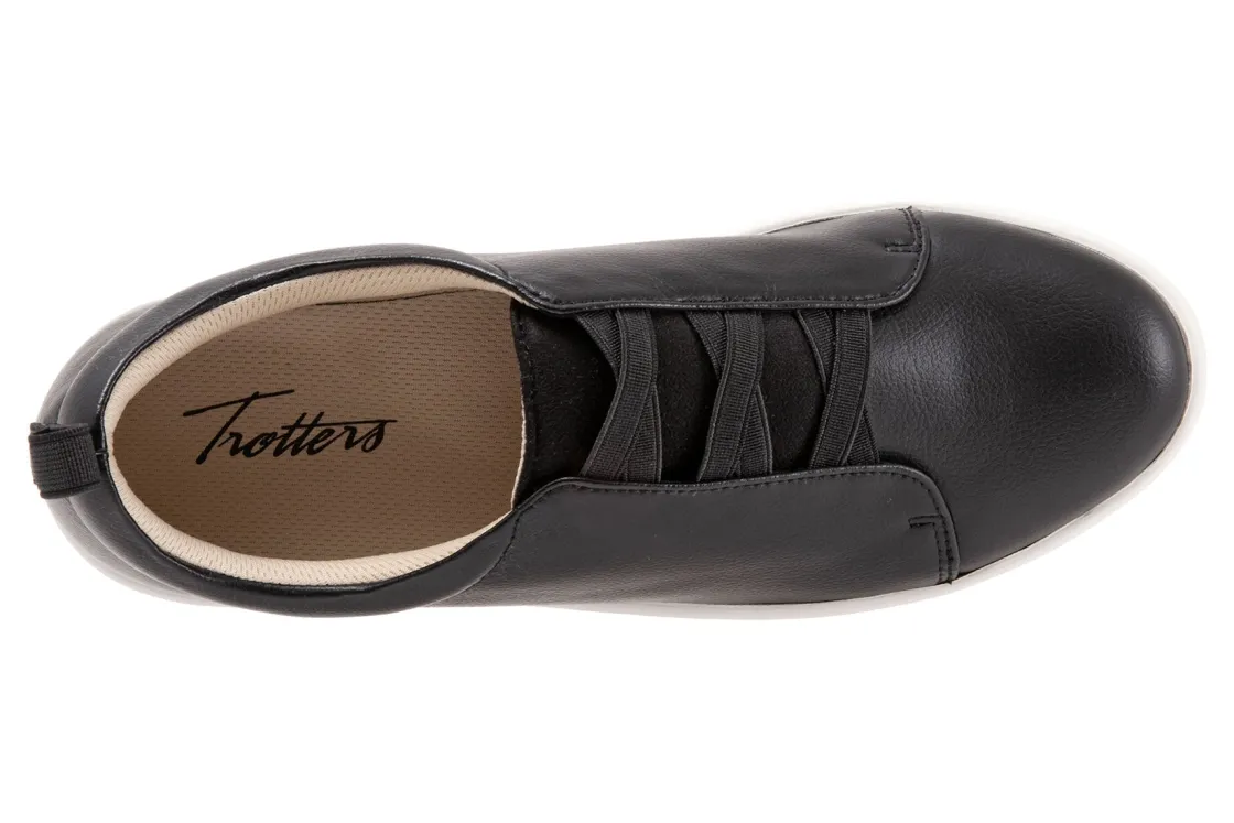 Trotters Avrille is a sporty and comfy slip-on sneaker. Features include leather and man made uppers, removable cushioned footbed and molded rubber outsole. A criss-cross elastic fitting system, cool polyester mesh lining and 1-inch heel height will make these sneakers a new favorite.