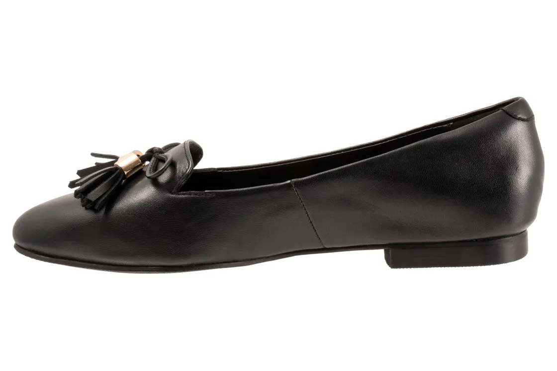 Trotters Hope is a comfy and sophisticated flat loafer. These chic dress shoes have leather uppers, removable cushioned footbed and flexible rubberized outsole. A leather upper lining, pointed toe silhouette with bow tie detail and ⅝ inch heel height makes these loafers irresistible.