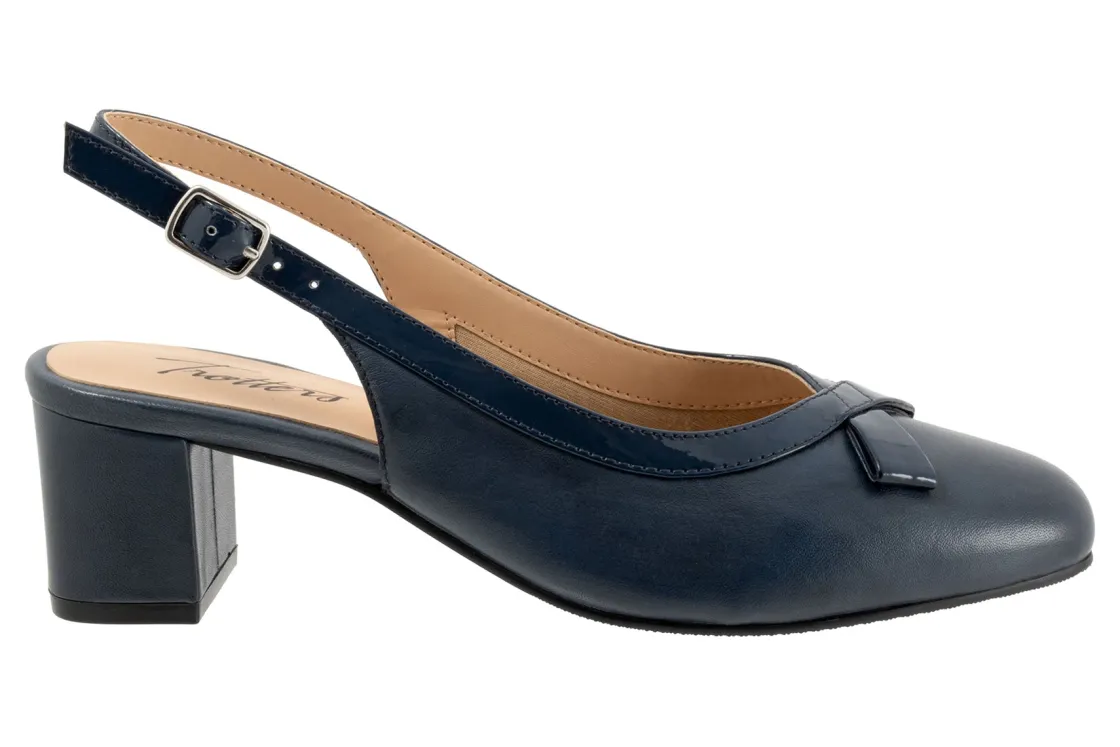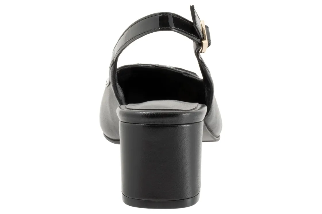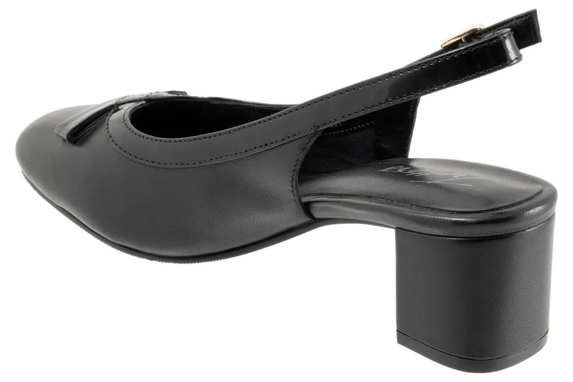 The Dalani is a mid-heel pump with an adjustable strap for a easy wear. It has a soft cushion footbed for your everyday use. Stylish contrast trim creates a bow-shaped detail at the toe of this posh pump made with comfy arch support.