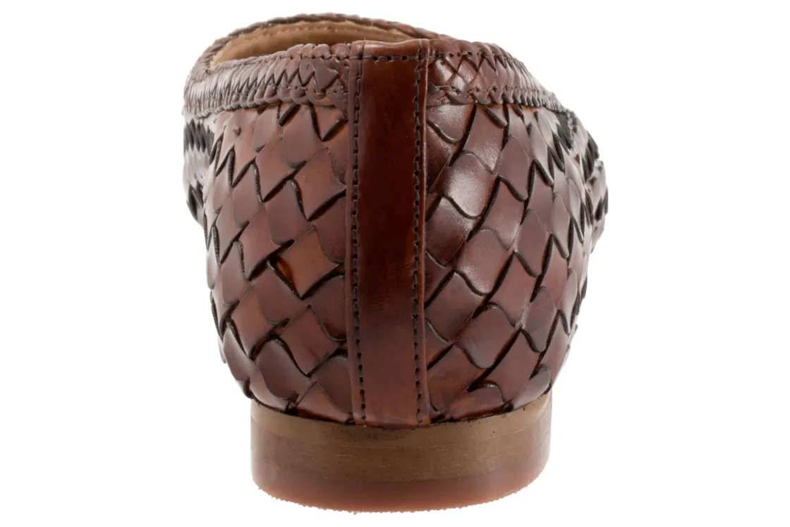 Beautiful woven leather in a fish scale design is complimented by a braided leather design along the top line of the Emmie flat. A fully leather-lined interior and cushioned footbed provide luxurious comfort.