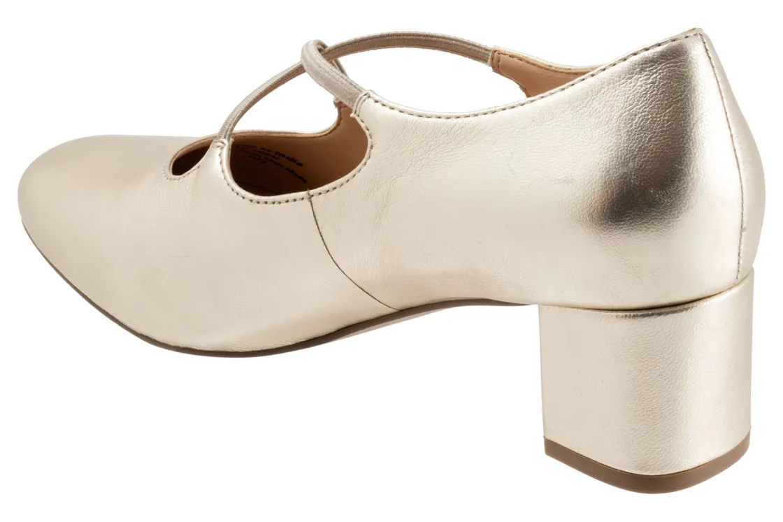 The Demi is ready for dancing or a night out with a cross-strap design of elasticized gore straps for a custom fit. The footbed is cushioned and has arch support.