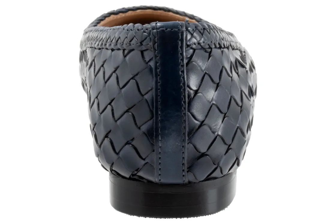 Beautiful woven leather in a fish scale design is complimented by a braided leather design along the top line of the Emmie flat. A fully leather-lined interior and cushioned footbed provide luxurious comfort.