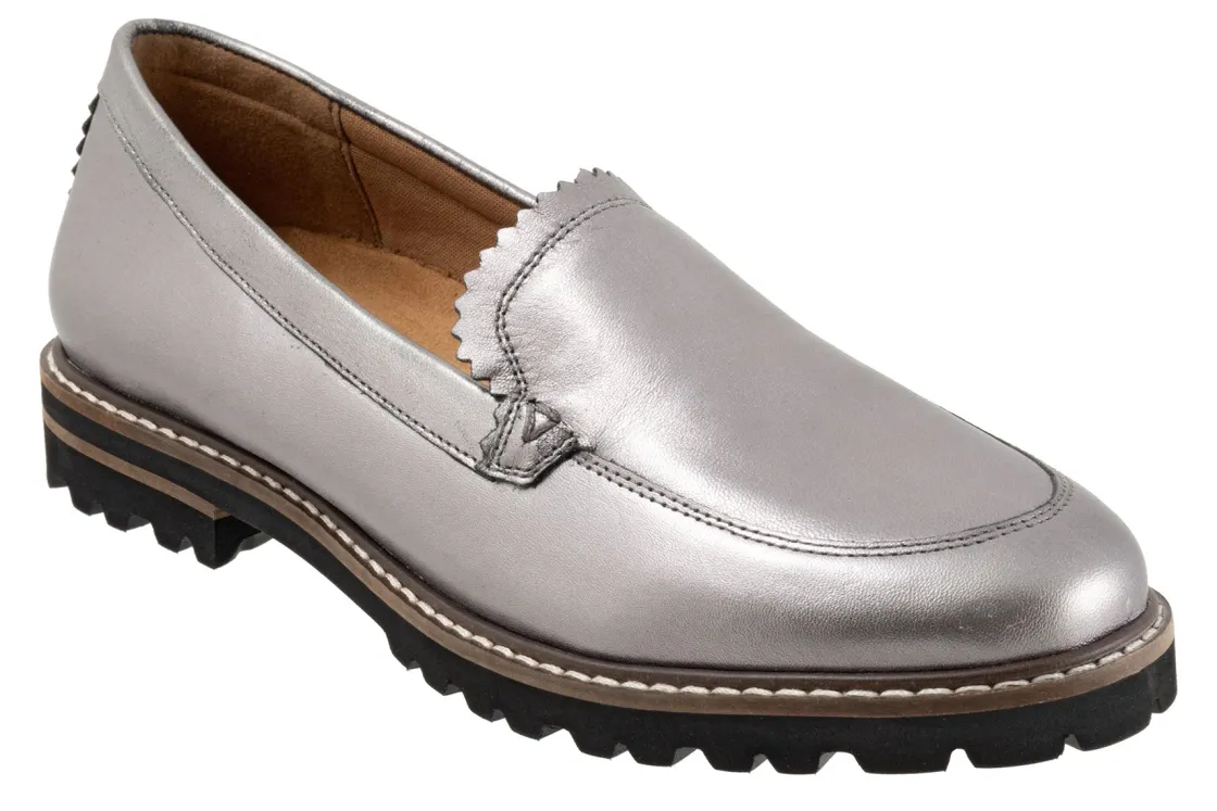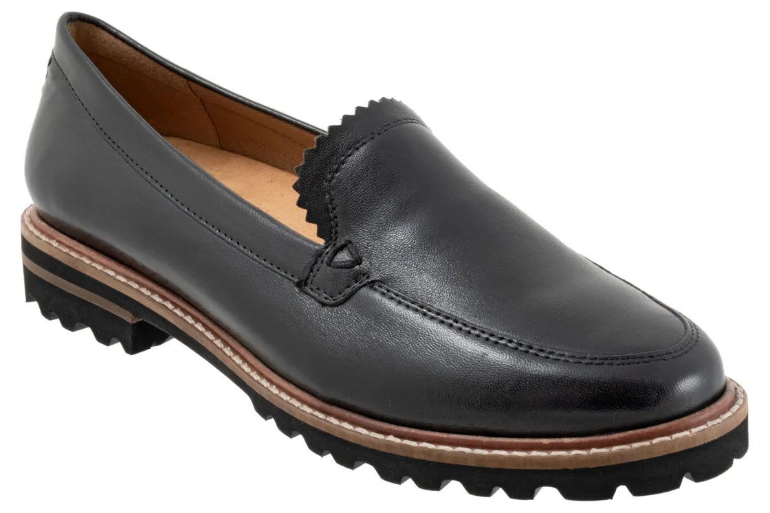 Subtle stitch detailing and soft fringe edging give the Trotters Fayth loafer a distinctive style. The rugged sole is light and flexible and the footbed is cushioned and removable.