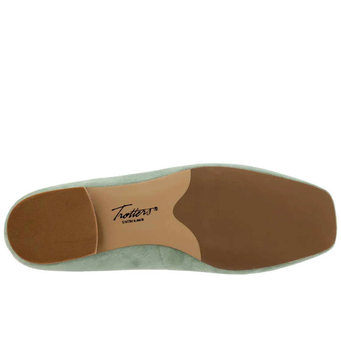Honor makes a statement with its square toe and skimmer style. A wonderfully cushioned footbed and flexible rubber sole with low stacked heel finish off this beautiful flat.
