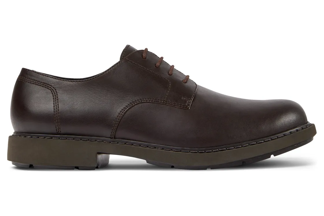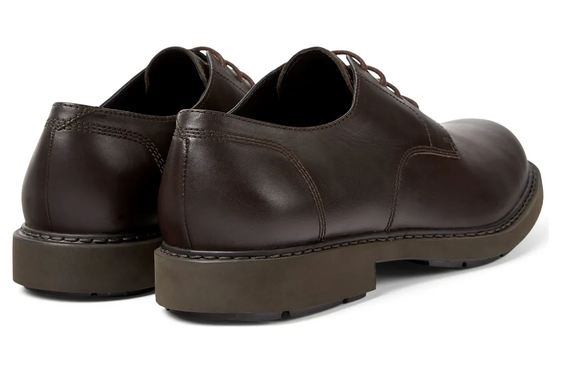 Camper Neuman K100152 is a timeless men’s blucher shoe. Prominent features include cow leather uppers, textile lining and insole and sturdy EVA outsole. A round toe, lace-up closure and outsole with vertical cuts outlines these trendy shoes.