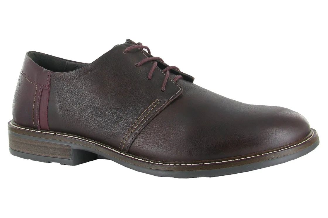 The Naot Chief Handcrafted is a lace up dress shoe with a contrasting heel cup. This style has a padded heel cup & tongue for ultimate comfort. The Chief has padded technical lining in the front for comfort and moisture absorption. Naot’s removable, anatomic cork & latex footbed is wrapped in pampering suede and molds to the shape of the foot with wear. The Executive Collection features a 1.75″ TPR sole with a metal shank. This collection uses a hand-sewn Strobel construction making it strong and extremely flexible.