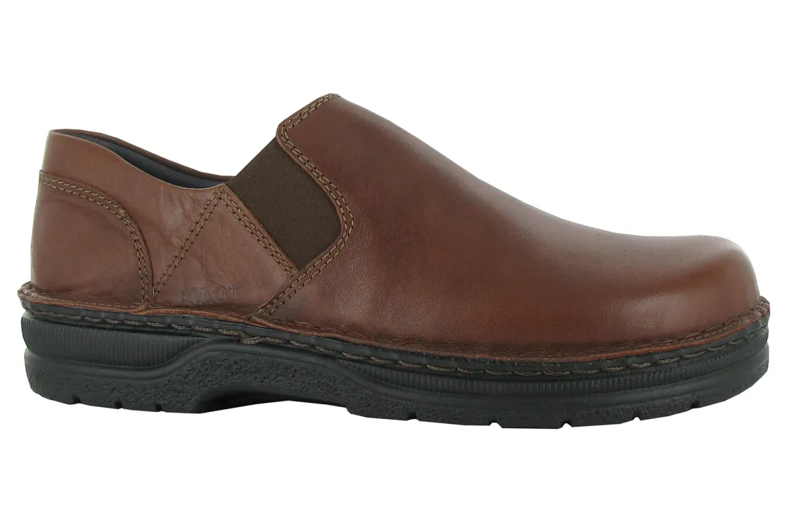 Get up and go in this comfortable men’s Naot Eiger. Natural breathable leather upper, footbed is made from natural materials suede coated and easily replaceable with a custom orthotic. The sole is constructed of high-quality rubber, polyurethane and latex that retain flexibility and are highly resistant to erosion.American Podiatric Medical Association (APMA) Accepted for promoting good foot health.Hand sewn construction, soft breathable leather upper.Deep heel indentation helps the body balance and maintain the natural shape of the pad of the heel that protects the heel bone. Arch support helps to distribute weight evenly.Removable and replaceable footbed.68111-269