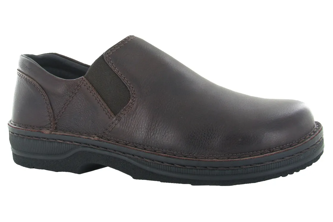The Naot Eiger is a slip on shoe with inside gore at both sides of the instep for accessibility and a padded heel cup for extra comfort & support. This style features padded technical lining at the front which provides comfort and absorbs moisture. Naot’s removable, anatomic cork & latex footbed is wrapped in pampering suede and molds to the shape of the foot with wear. The Men’s Scandinavian Collection features a 1.5″ polyurethane sole which is extremely lightweight, durable & slip resistant.