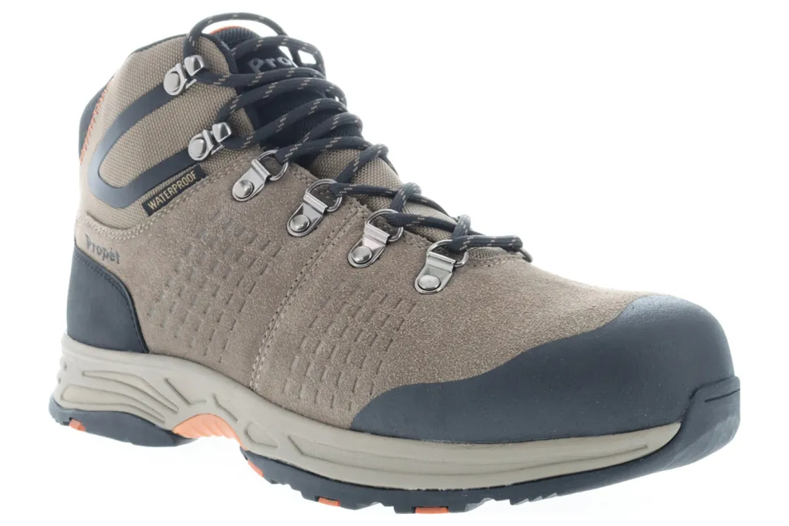 Propet Conrad is a hiking boot built for the outdoors. Take on anything with a suede and mesh upper, waterproof construction, EVA midsole and rubber outsole. A breathable PU insole keeps feet cool, while orthotic insoles provide support for any trail or hike.
