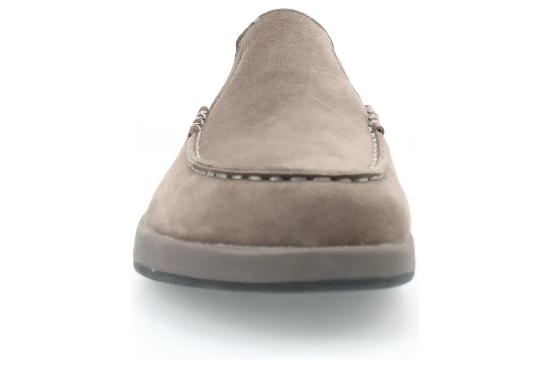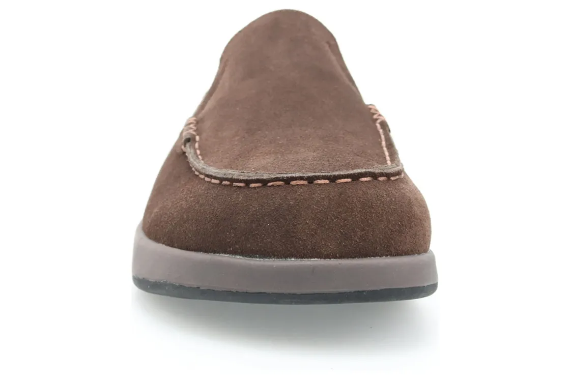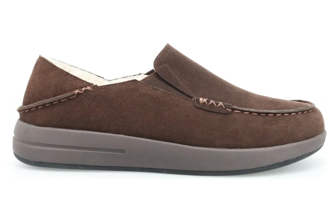 The perfect slipper for slip-on comfort and a rubber outsole for traction on outdoor surfaces Suede upper with fold-down heel counter for slip-on convenience. Faux shearling lining for warmth.