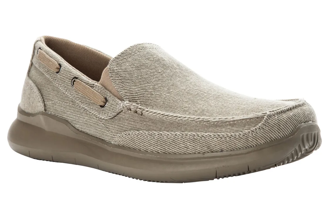 Slide into heel-to-toe comfort in the men’s Propet Viasol. The canvas upper features twin gores to promote flexibility and ensure easy on and off. The cushioned footbed is easily removed to accommodate a custom orthotic, while the durable rubber outsole provides stability and traction. This modern take on a classic boat shoe is perfect for day-to-night wear! Soft canvas upper. Twin gores for flexibility and easy on and off. Includes a cushioned footbed that is easily removed to accommodate a custom orthotic. Durable rubber outsole provides stability and traction.