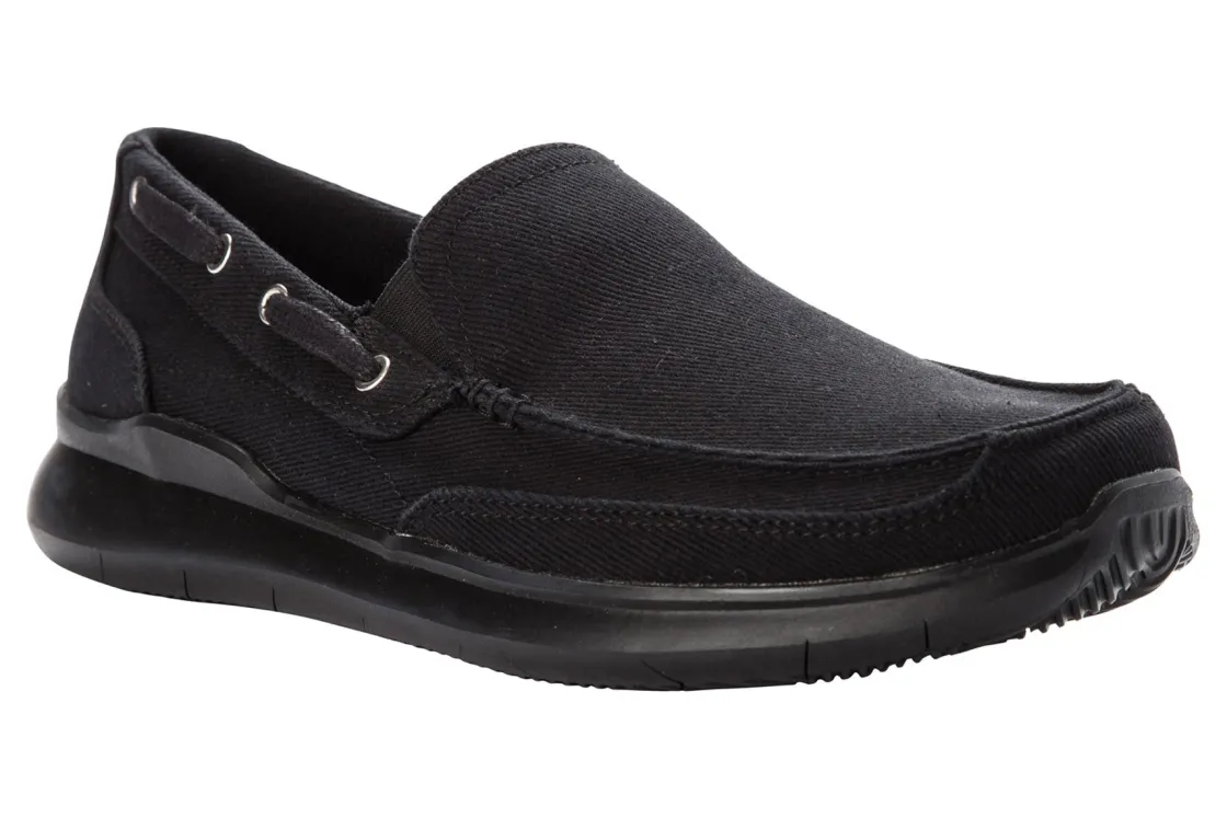 Slide into heel-to-toe comfort in the men’s Propet Viasol. The canvas upper features twin gores to promote flexibility and ensure easy on and off. The cushioned footbed is easily removed to accommodate a custom orthotic, while the durable rubber outsole provides stability and traction. This modern take on a classic boat shoe is perfect for day-to-night wear! Soft canvas upper. Twin gores for flexibility and easy on and off. Includes a cushioned footbed that is easily removed to accommodate a custom orthotic. Durable rubber outsole provides stability and traction.