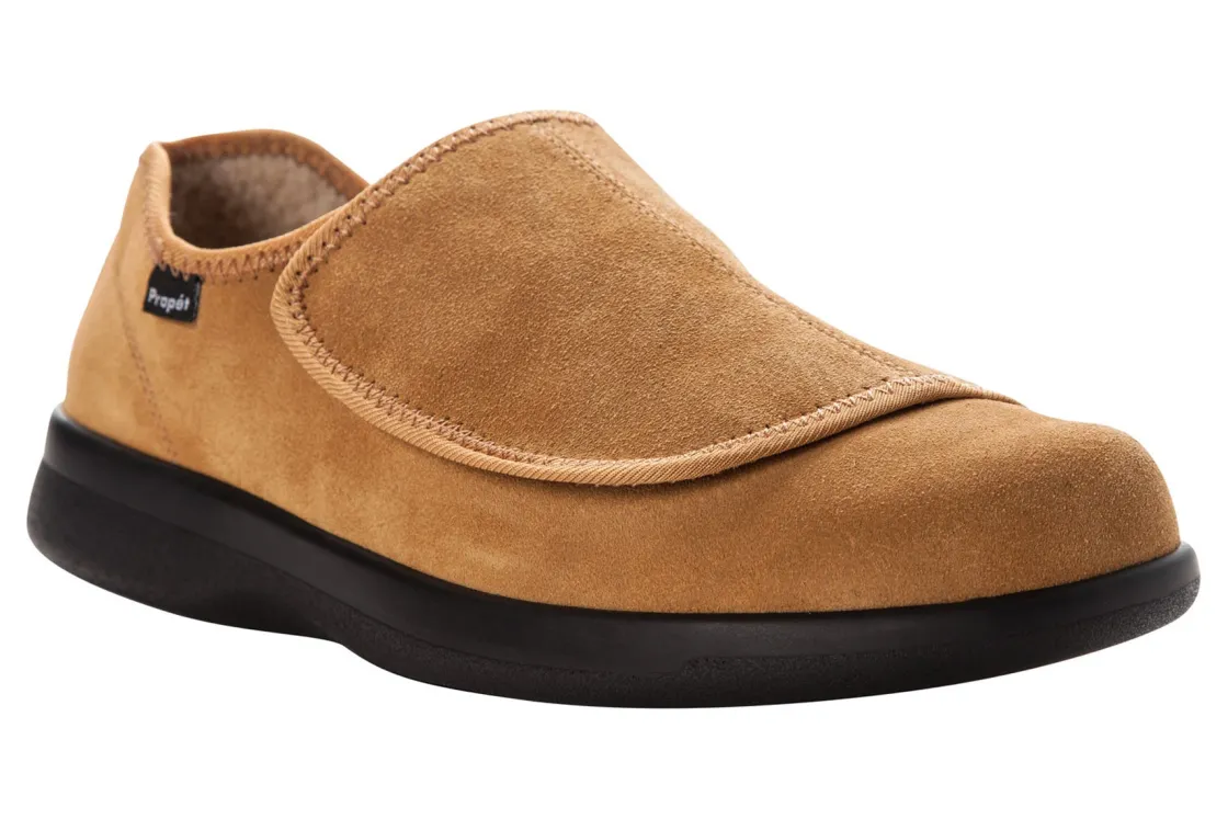 Whether you’re indoors or outdoors, stride in ultimate comfort in the men’s Propet Coleman slipper. The suede upper features an extra-large hook and loop closure to ensure a secure and personalized fit. The cushioned terry cloth footbed is easily removed to accommodate a custom orthotic, while the durable polyurethane outsole provides stability and traction on both indoor and outdoor surfaces.