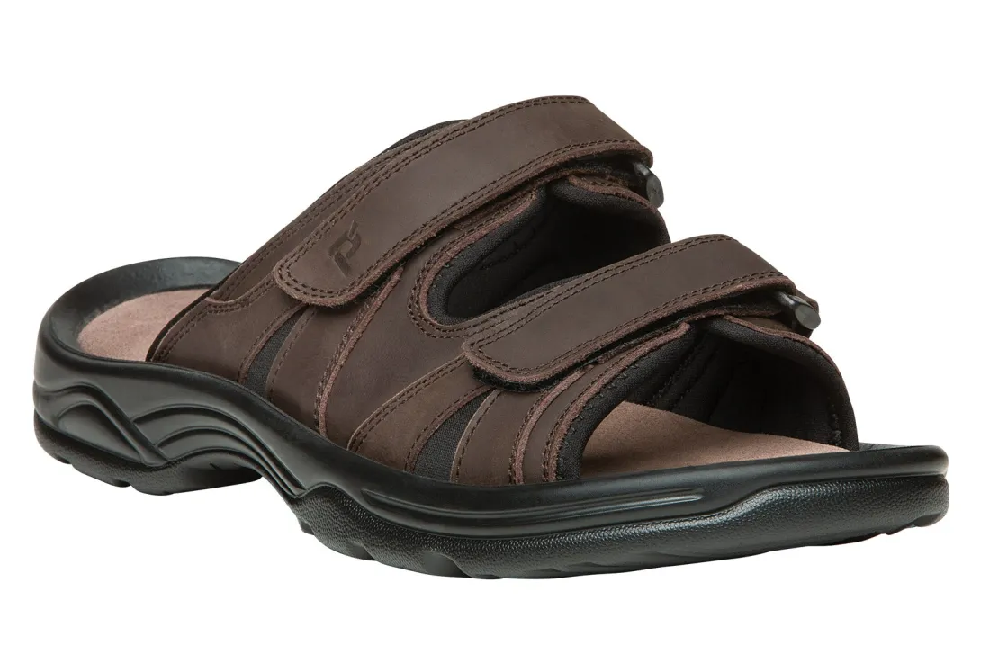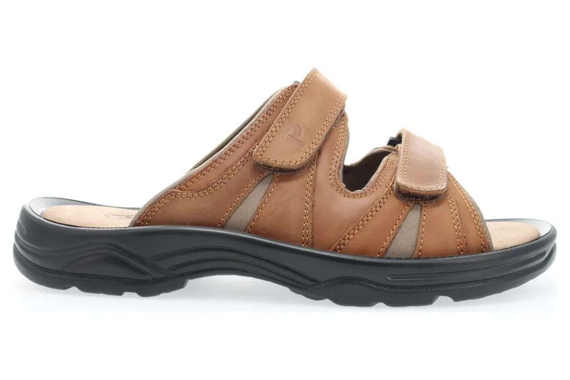 Waxy Nubuck slide sandal with neoprene lining. EVA footbed with microfiber lining. Long lasting PU outsole.