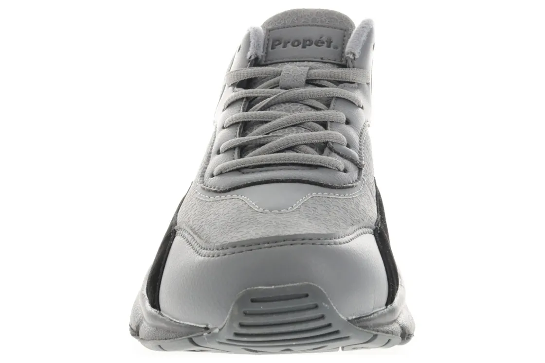 Propet Stability Mid is a sporty mid top sneaker. Prominent features include a mesh and synthetic upper, removable footbed, EVA midsole and rubber outsole. A soft and cushioned PU insole adds comfortability, while a roomy toe box provides breathability and stability.