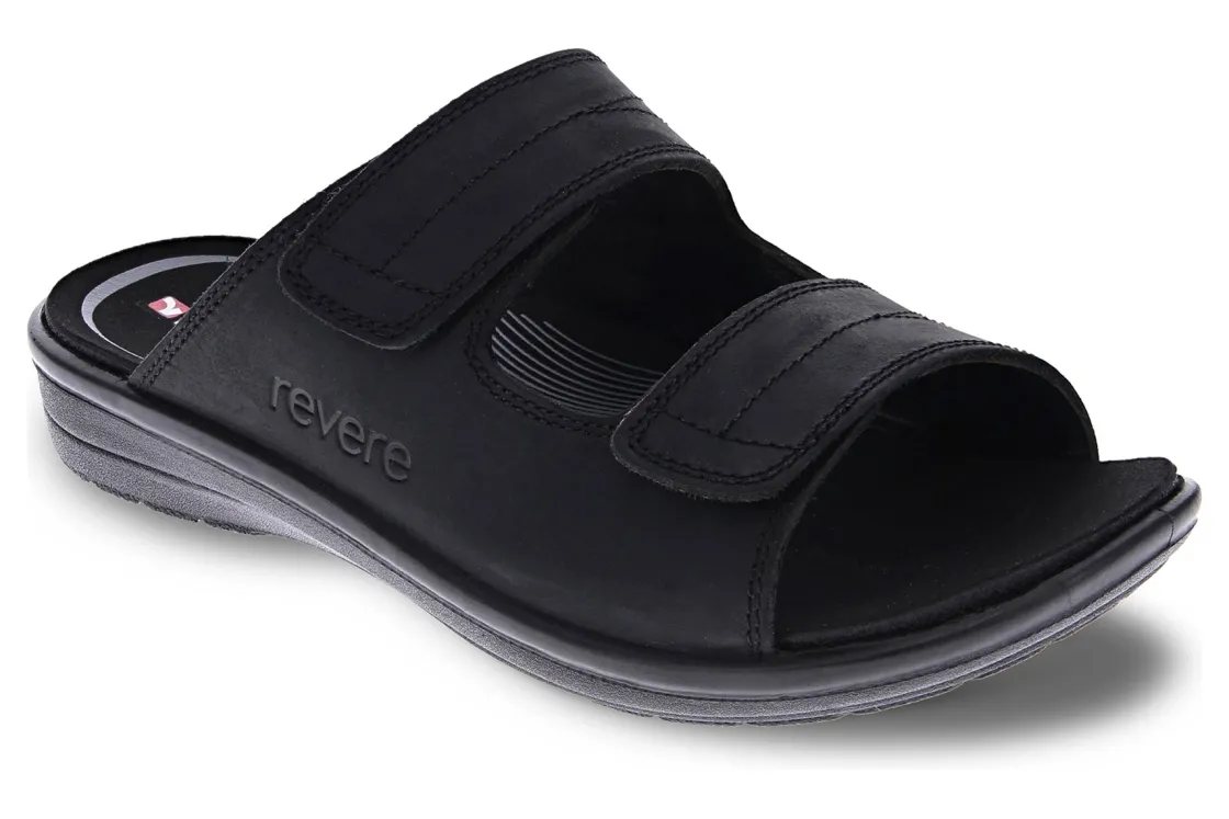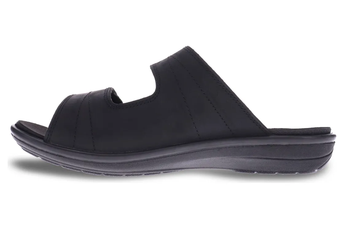 Durban’s no-frills is anything but boring. These orthotic-friendly slides are double strapped with premium leather uppers. The subtle stitching lends to a look that’s clean and confident.