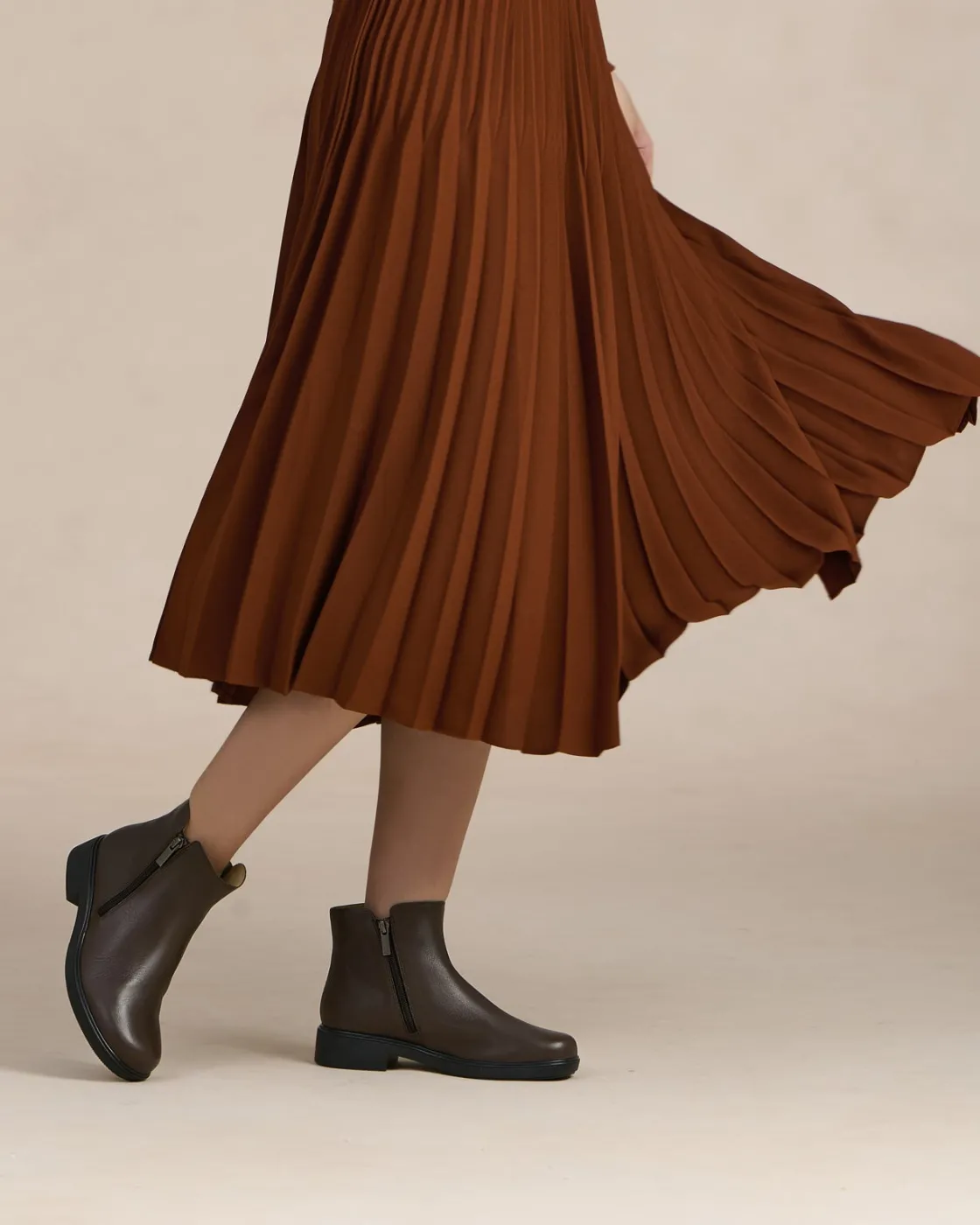 Secure Zipper Closure – A secure zipper closure secures feet in place and provides a snug and customized fit for hours of wear, while a spacious toe box helps reduce pressure on toes.