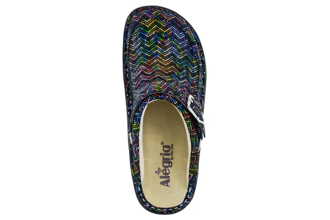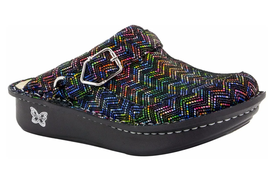 Alegria Seville is a versatile and comfortable clog. Features include an adjustable swivel strap that turns backless clogs into a slingback and PU outsole. A variety of leather uppers, cork and latex footbed and a moisture wicking leather lining completes these functional clogs.