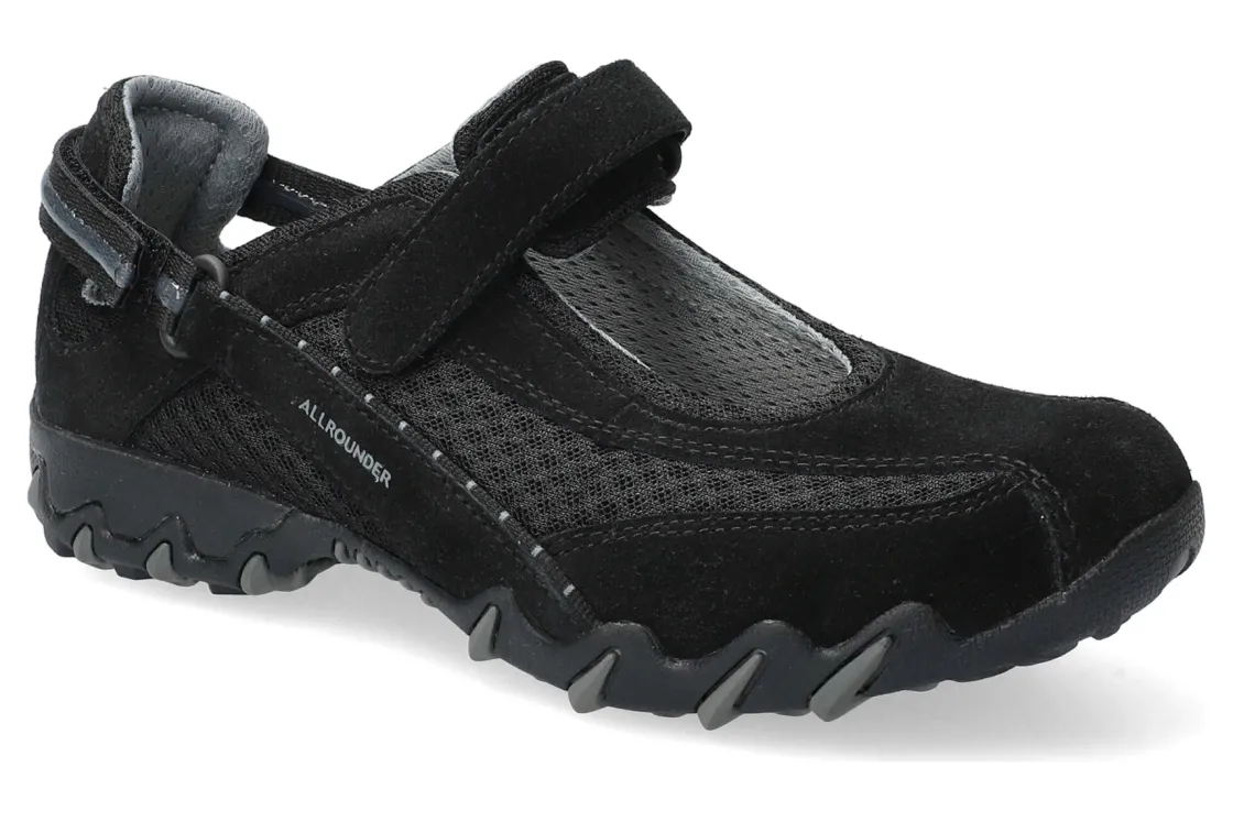 An Allrounder icon. Rise to every day’s challenges with the Allrounder by Mephisto Niro. Innovative design and legendary craftsmanship result in a shoe you’ll love for nearly any occasion. Rugged and feminine, these unique shoes pair the confident capability of a rugged hiking or trekking shoe with subtle design cues that almost subliminally evoke a classic Mary-Jane. A single adjustable strap makes for simple on-and-off, while also ensuring an exceptionally secure fit. Soft padding throughout provides unbeatable comfort as well as correct support, and combined with a grippy outsole that absorbs whatever you throw at it, you’ll have a shoe that commands attention and delivers perfection.Material: SUEDE LEATHERLining: TEXTILE LININGFastener: HOOK AND LOOP TAPEWidth: G (standard width)Heel Type: FLAT HEEL, 1.5 cmRemovable Footbed: YES