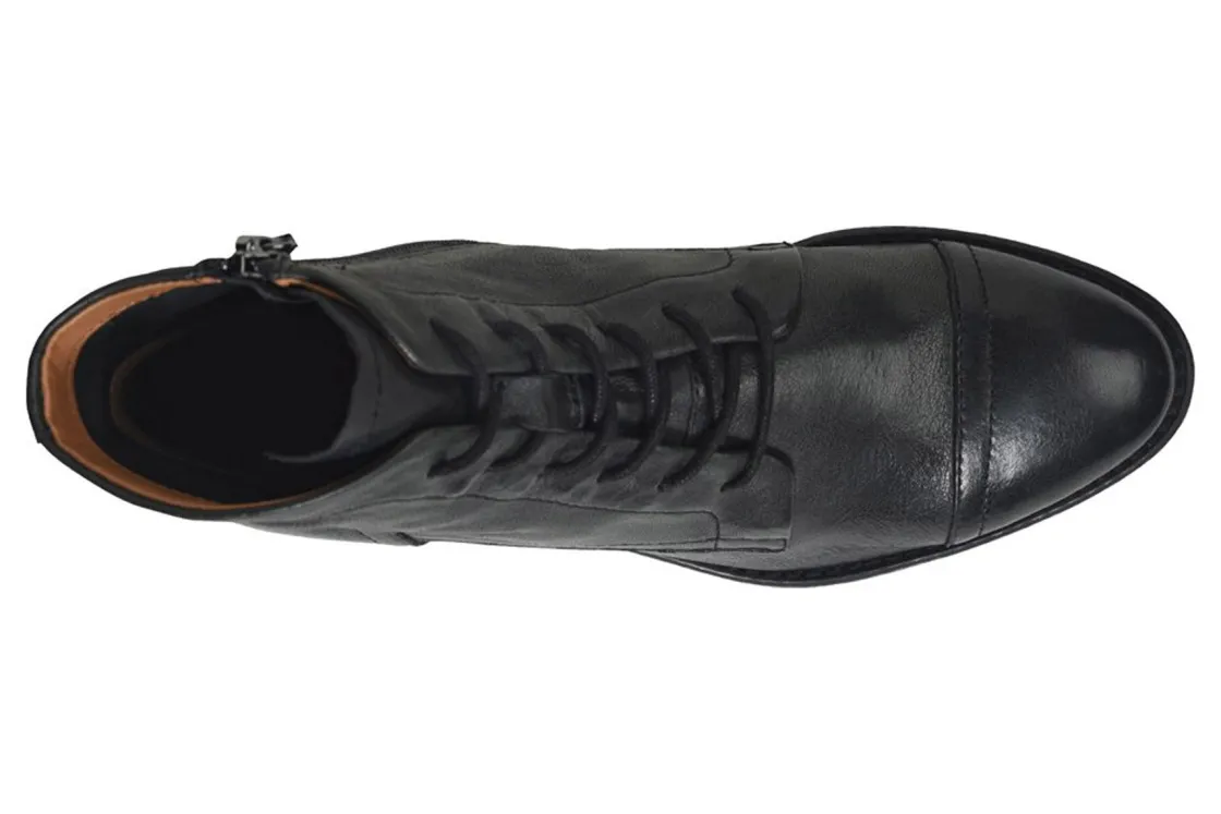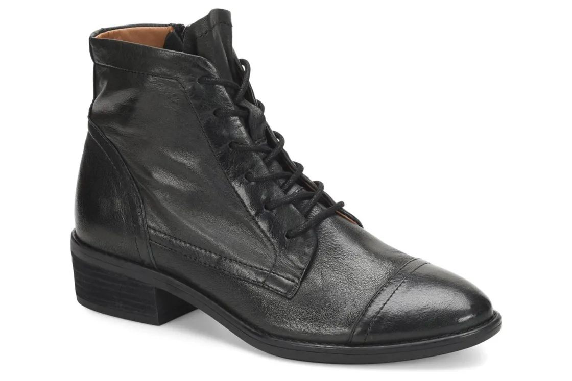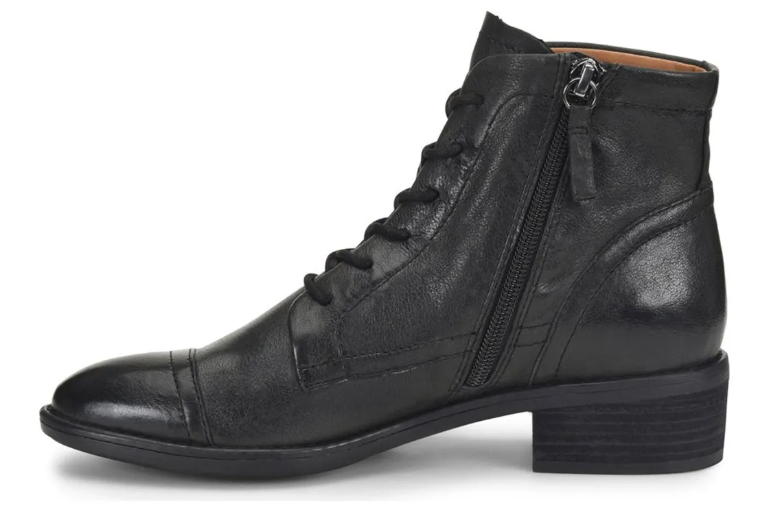 Take on fall weather in comfort and style with the women’s Comfortiva Cordia combat boot. The cap toe adds a dressier finish. The lace up vamp secures the foot in place, while the inside zipper offers an easy entry. The durable outsole provides traction and stability. Leather upper with a cap toe for added interest.Lace up vamp for a secure fit.Zip up closure for easy entry.Breathable leather lining.Cushioned footbed for added comfort.Durable outsole provides traction.
