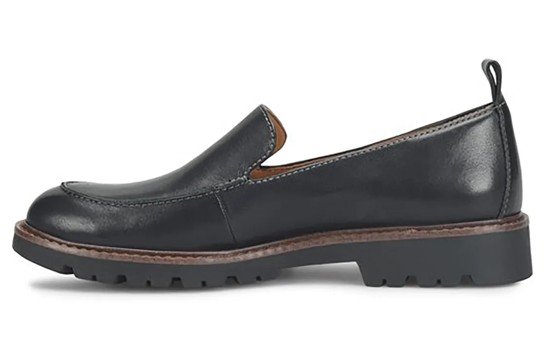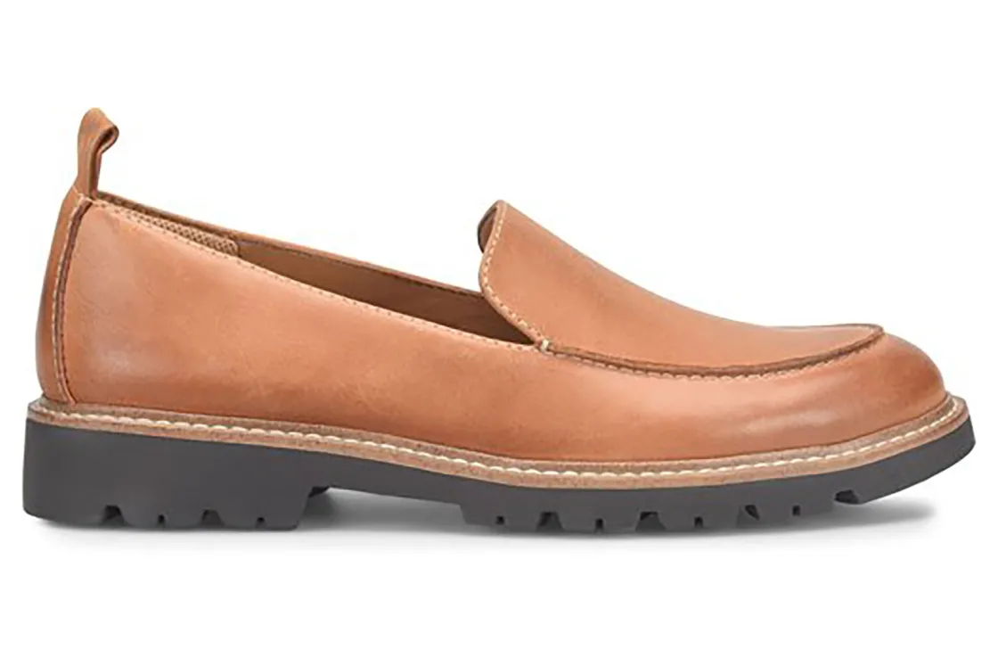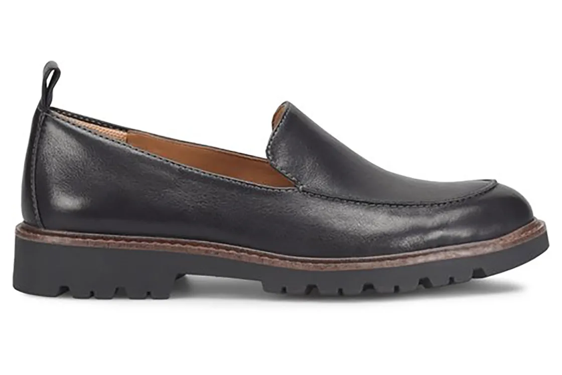 Comfortiva Lindee is a chic and sophisticated modern loafer. These cute dress shoes have leather uppers, a removable footbed and a lightweight EVA outsole. A padded heel collar, a round moc toe, heel pull tabs and a 1-inch heel height allows these loafers to be worn all day or night.