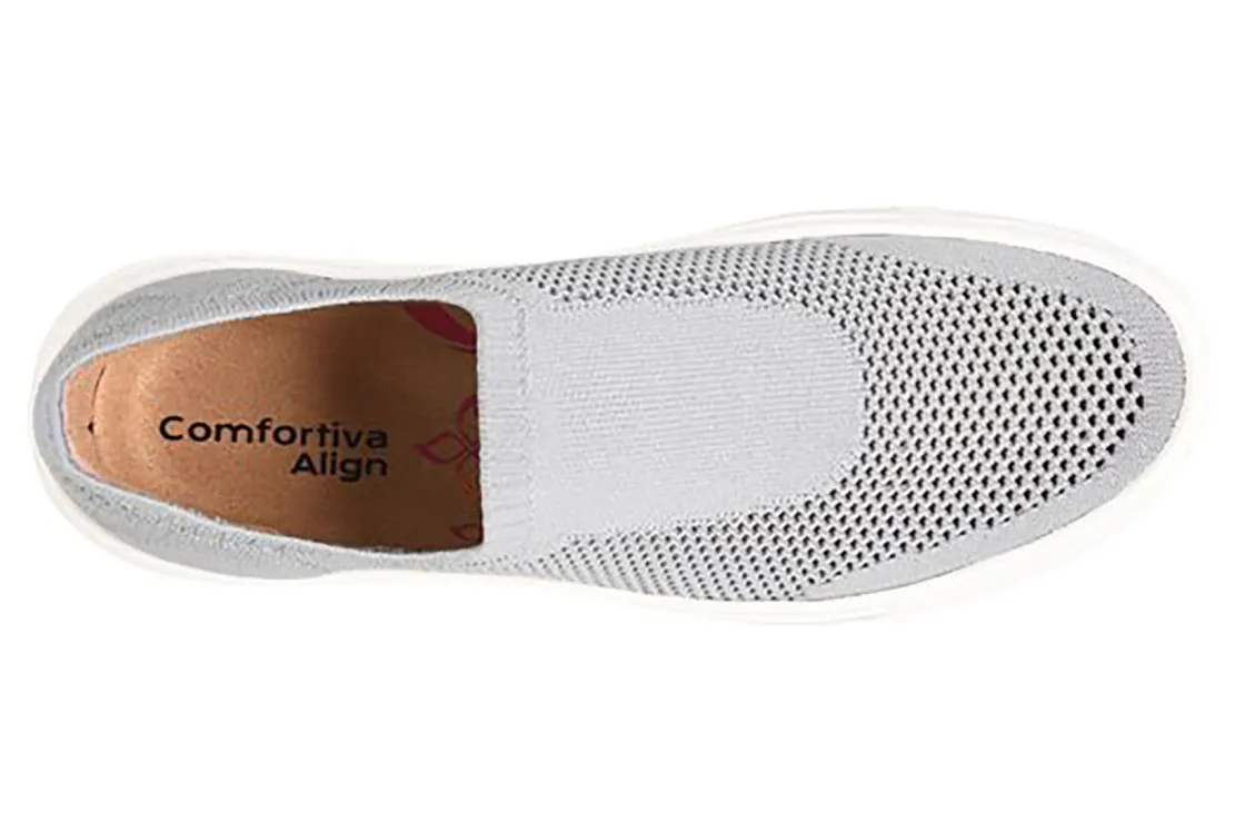 Comfortiva Tai is a comfortable slip-on sneaker for any occasion. Features include a recycled knit upper, molded removable footbed and rubber blend outsole. Breathable mesh offers ventilation and cooling, while a padded heel collar comforts feet throughout the day.