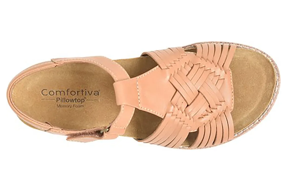 Comfortiva Gladia updates a traditional huarache for a modern walking sandal. Hand-woven upper and plush footbed supports feet and provides added comfort. Comfortiva Gladia also offers an adjustable hook and loop strap, padded slingback strap and cork midsole.