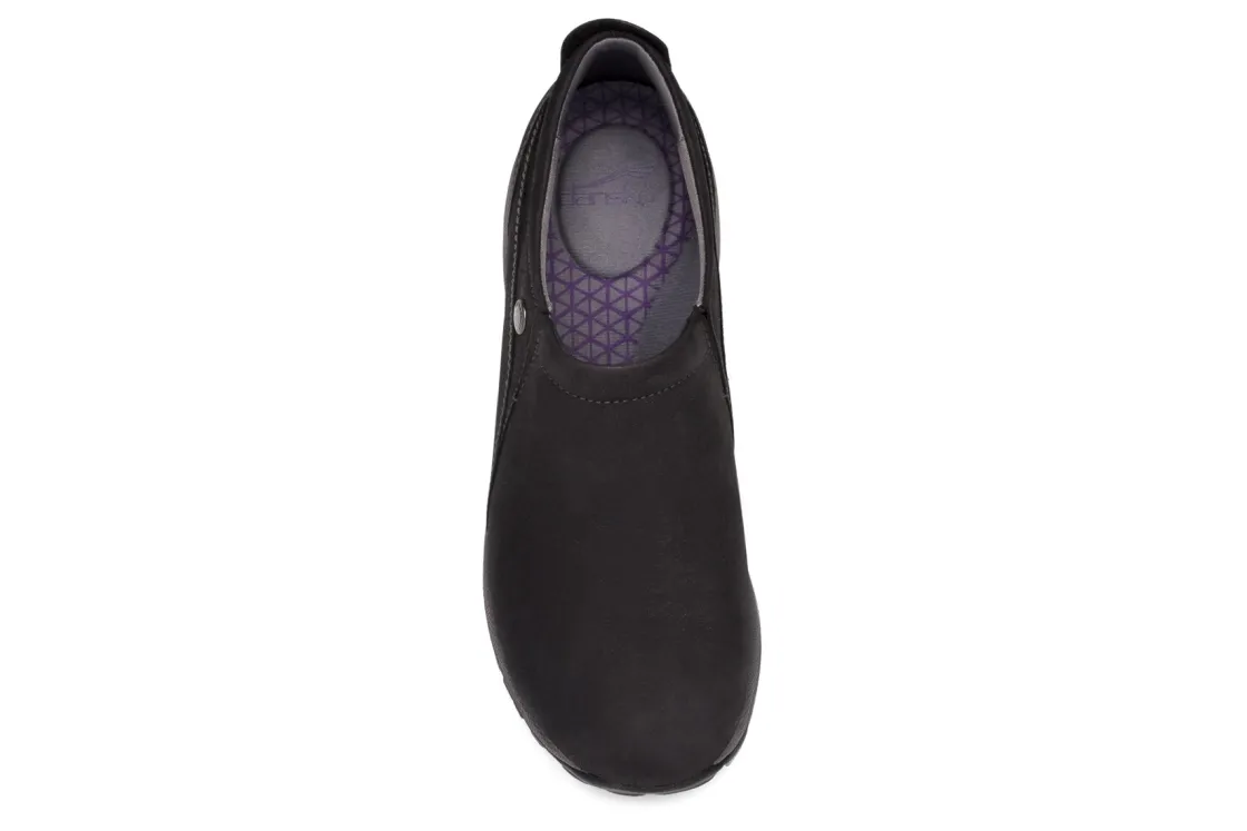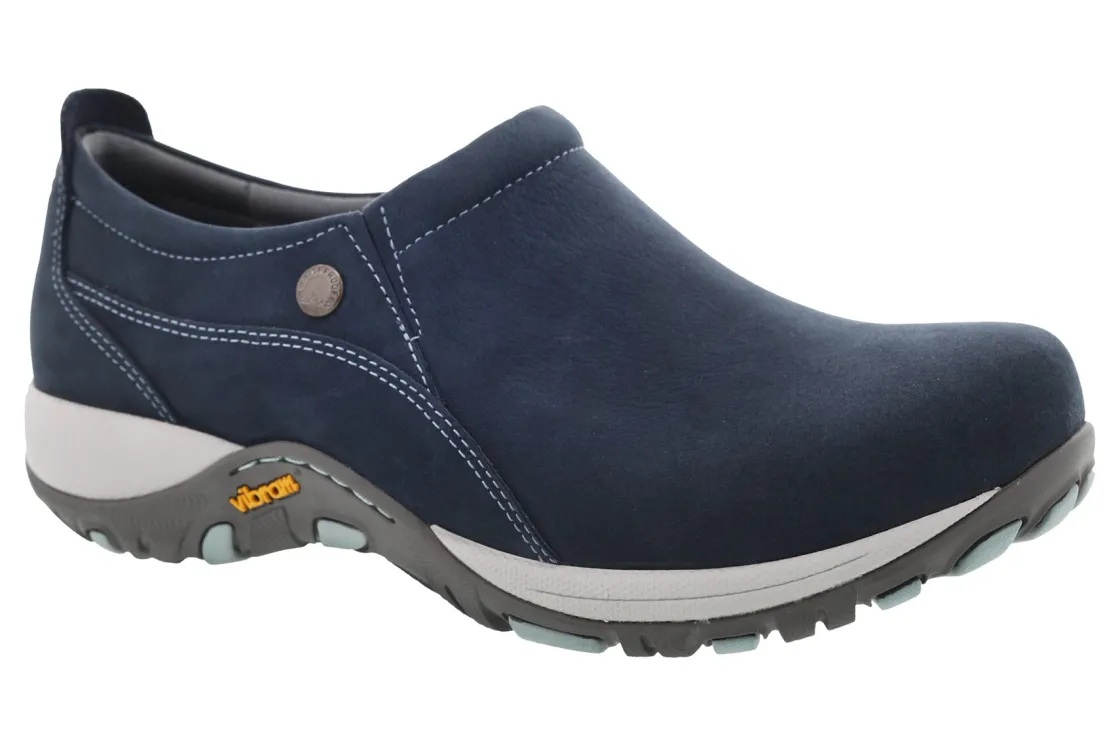 Dansko Patti is a slip-on clog built for the outdoors. Waterproof upper, removable EVA footbed and slip-resistant Vibram rubber outsole makes these trail-ready. 3M Scotchgard treated uppers keep moisture out, while a cushioned collar adds comfort and stability on any trail.