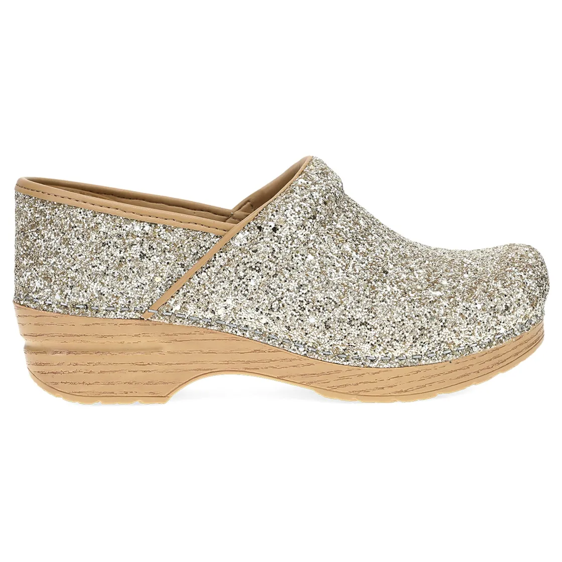 Hand-selected metallic leathers* add a bit of sparkle to the classic Professional clog so you can show your shine. It features a roomy reinforced toe box for protection and comfort. The contoured footbed adds support to the comfort features like a padded instep collar to feel good with virtually any foot. We set ourselves apart with a protective heel counter that allows the heel to move up and down freely while providing lateral stability, and the anti-fatigue rocker bottom, which is built to keep you moving forward.