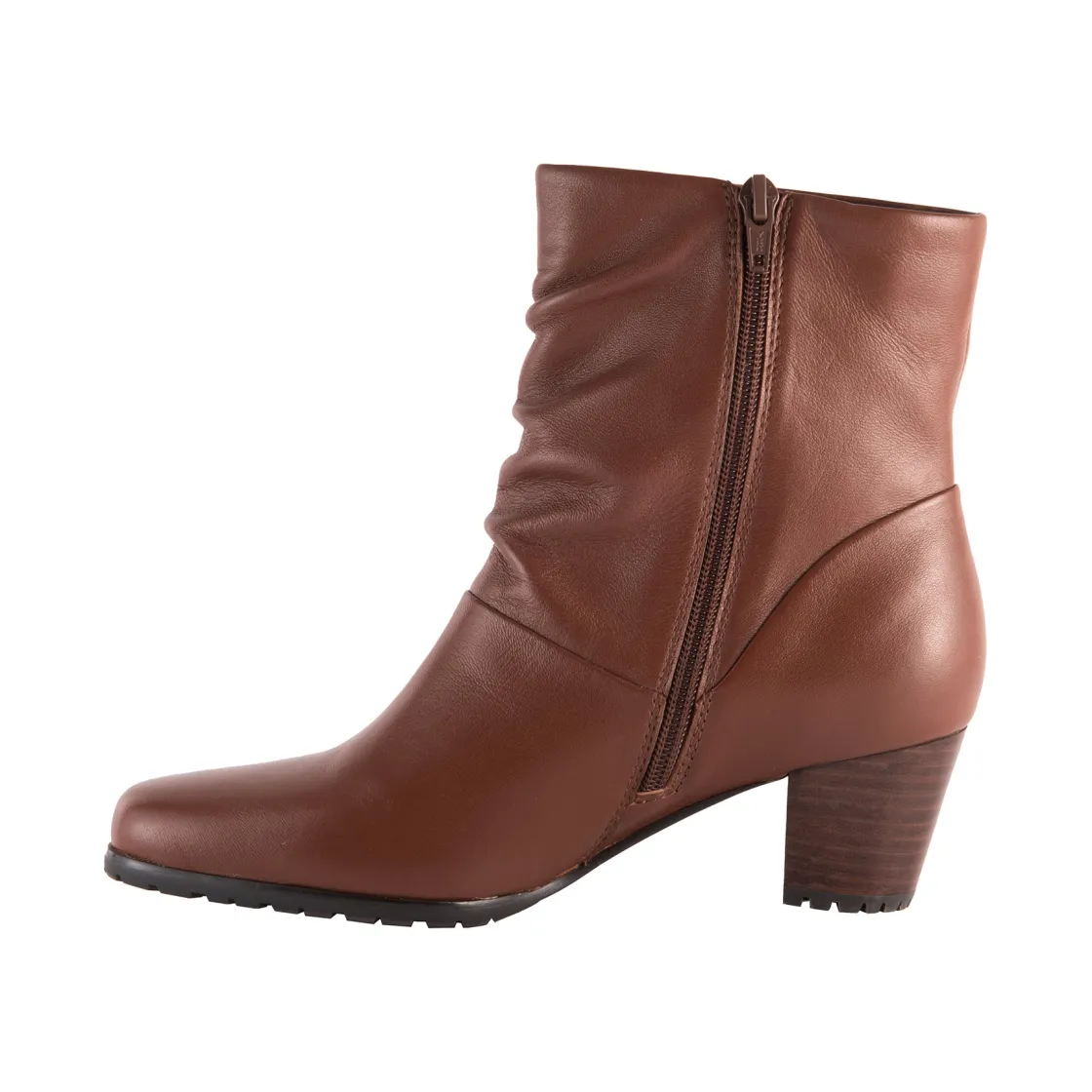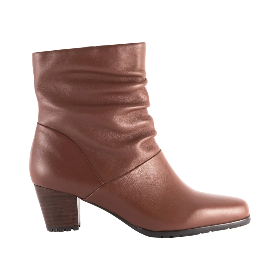 The David Tate® Kona is a stylish side-zip bootie made from supple leather that features a soft tricot lining for a snug and comfortable fit. It has a perfectly slouchy silhouette and is adorned with a 2-inch stacked heel, making it an elegant choice for a dress boot.