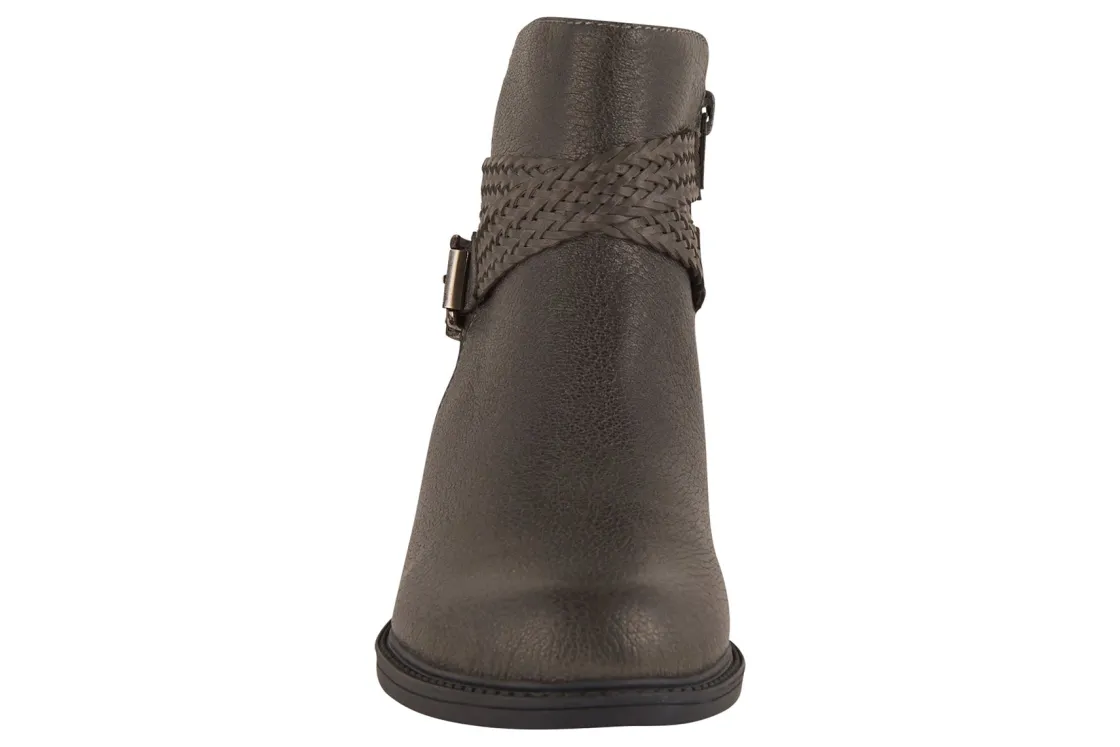 David Tate Skip is a chic and stylish women’s boot. Prominent features include pebble-grain leather uppers, inside zipper closure and durable rubber outsole. A cushioned insole, adjustable buckle, 1 ¼ inch stacked heel and 4 ½ inch shaft height outlines these fashionable boots.Pebble-Grain Leather Upper.Cushioned Insole.Inside Zipper Closure.Durable Rubber Outsole.Heel Height: 1 1/4 inches.