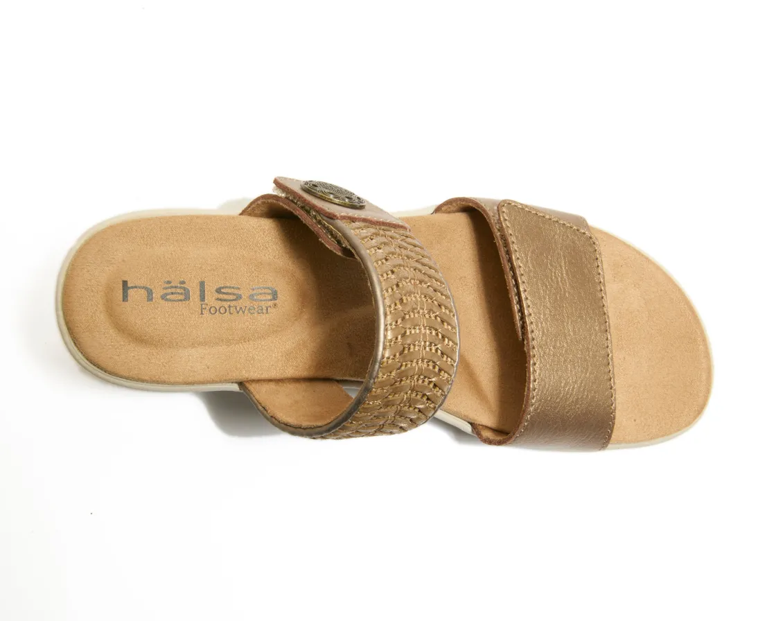 Elevate your daily style with the Halsa Footwear Delilah slip-on wedge sandal, featuring premium leather uppers that are both chic and comfortable. Designed with adjustable front and back straps for a perfect fit, these sandals are a great choice for any occasion this spring and summer.