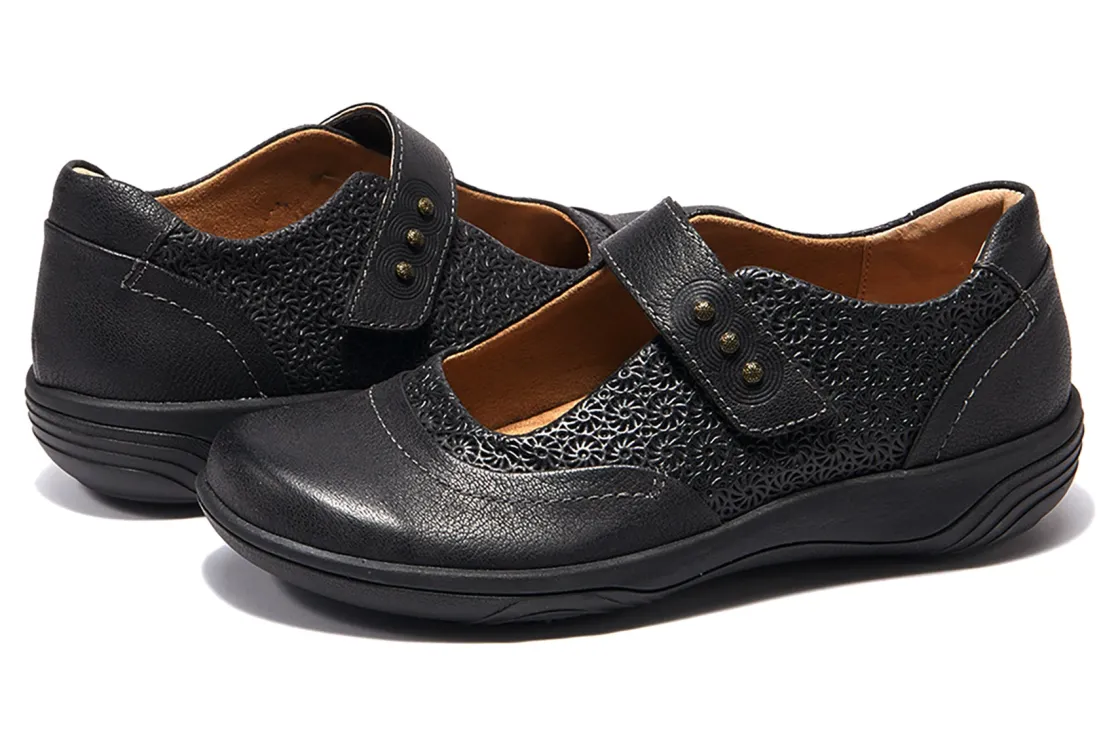 Halsa Footwear Aloe is a sturdy and comfortable Mary Jane shoe. Features include leather uppers, removable antimicrobial fabric insole and rubber outsole. An EVA midsole, leather and fabric lining and adjustable elasticized strap with hook and loop closure makes these Mary Janes popular.