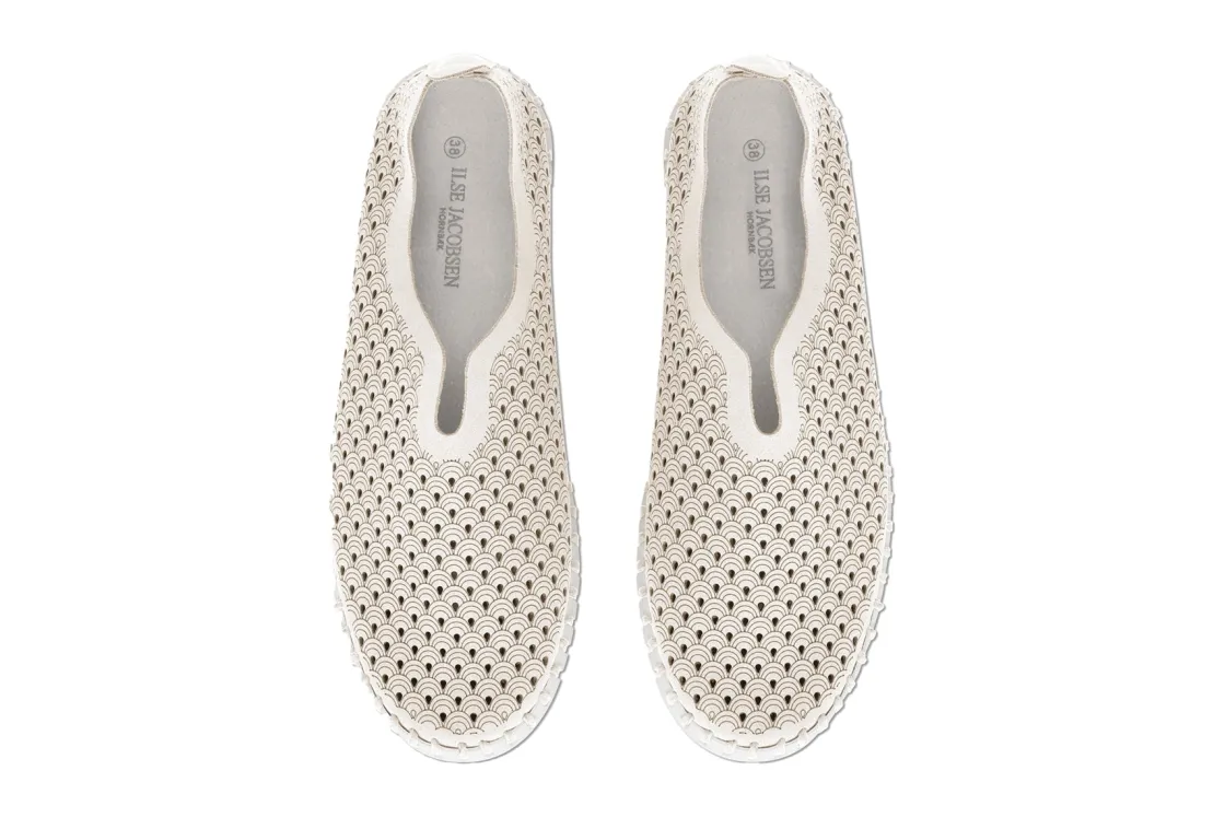 Ilse Jacobsen Tulip 139 is a lightweight and comfortable slip-on shoe. Prominent features include perforated recycled microfiber uppers, a removable insole and a sturdy and chunky outsole.