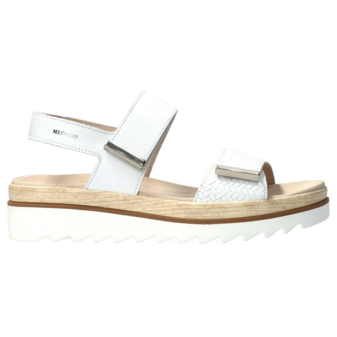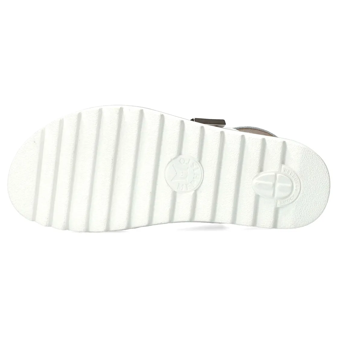With its sporty and casual look, this platform sandal guarantees incomparable comfort. Enjoy incomparable comfort thanks to the SHOCK-ABSORBER, present in the outsole, and its SOFT-AIR midsole, which helps to reduce the shocks inherent in walking. Adjustable Velcro straps ensure a perfect fit. Its genuine leather lining guarantees a high standard of quality and comfort. This sandal for women is made of crinkled white patent leather.