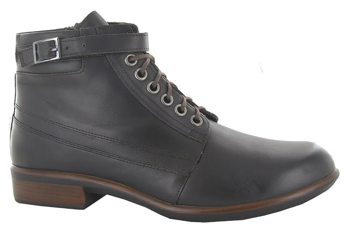 The Naot Kona is fashionable boot that provides a sleek and dressy look. This style features a hook and loop faux buckle as well as a zipper. This boot has padded technical lining for comfort, warmth & moisture absorption. Naot’s removable, anatomic cork & latex footbed is wrapped in microfiber & leather and molds to the shape of the foot with wear. The Aura Collection features a 1.5″ polyurethane sole with a metal shank which is extremely lightweight