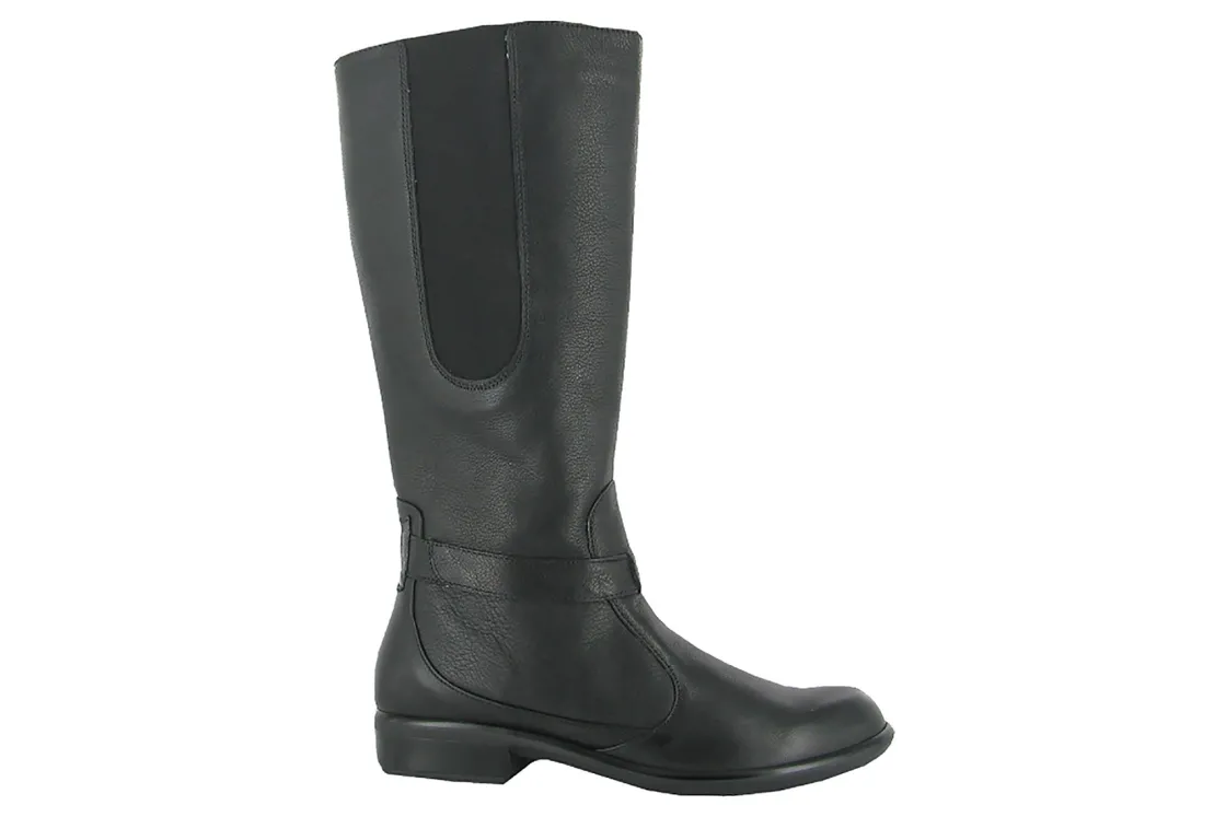The Viento is a beautiful tall boot that features water resistant leather and a 13″ shaft. The Viento comes with Naot’s removable footbed.